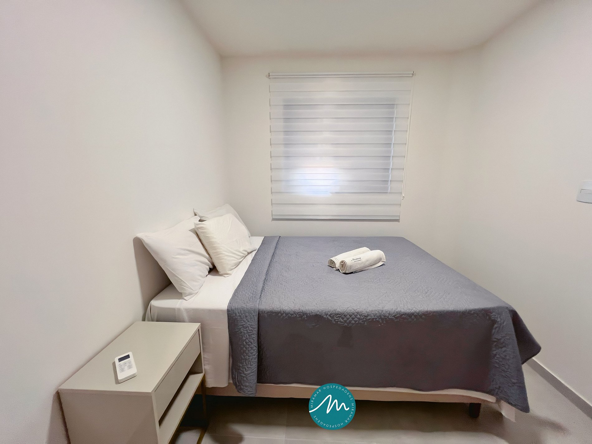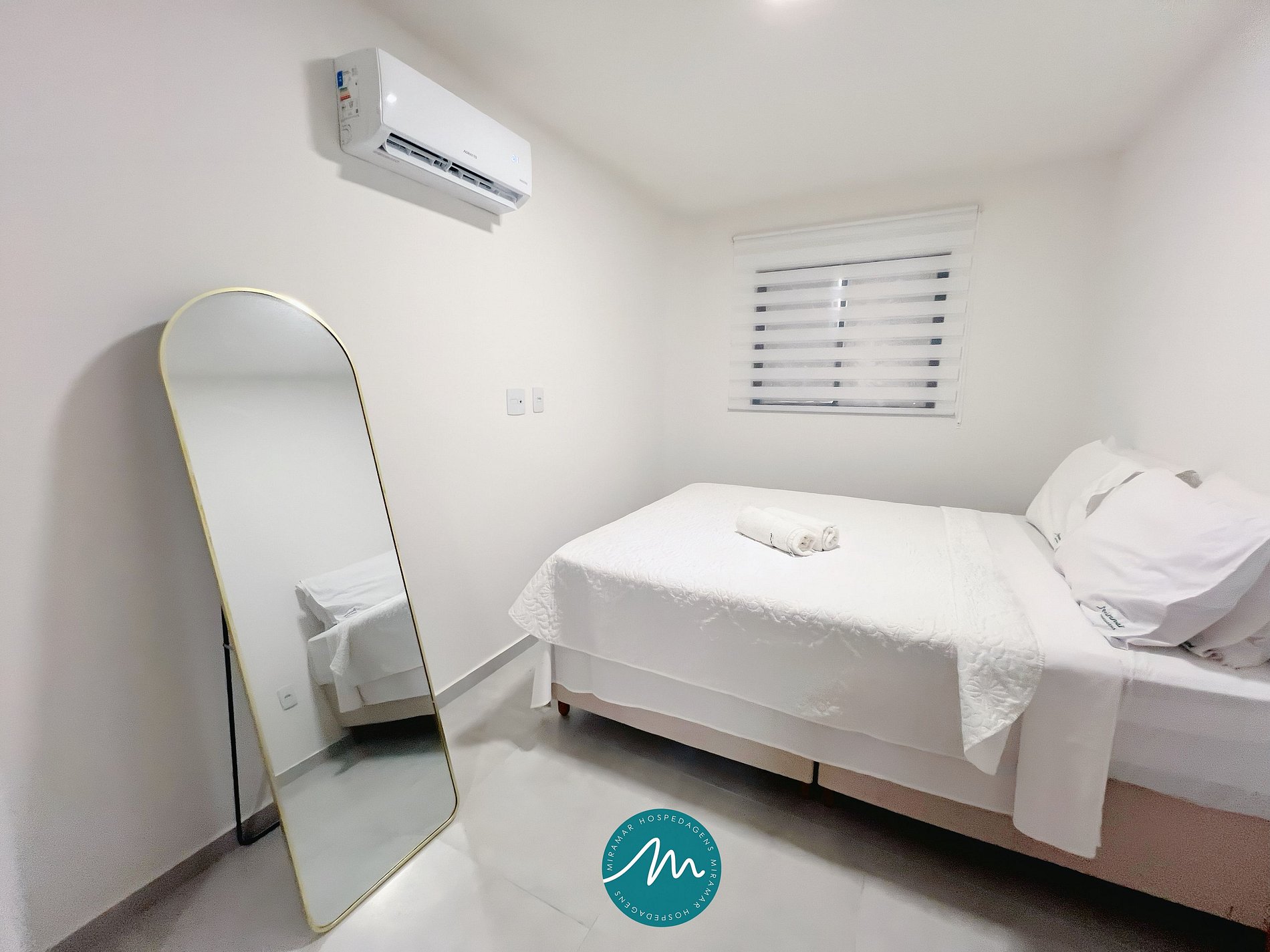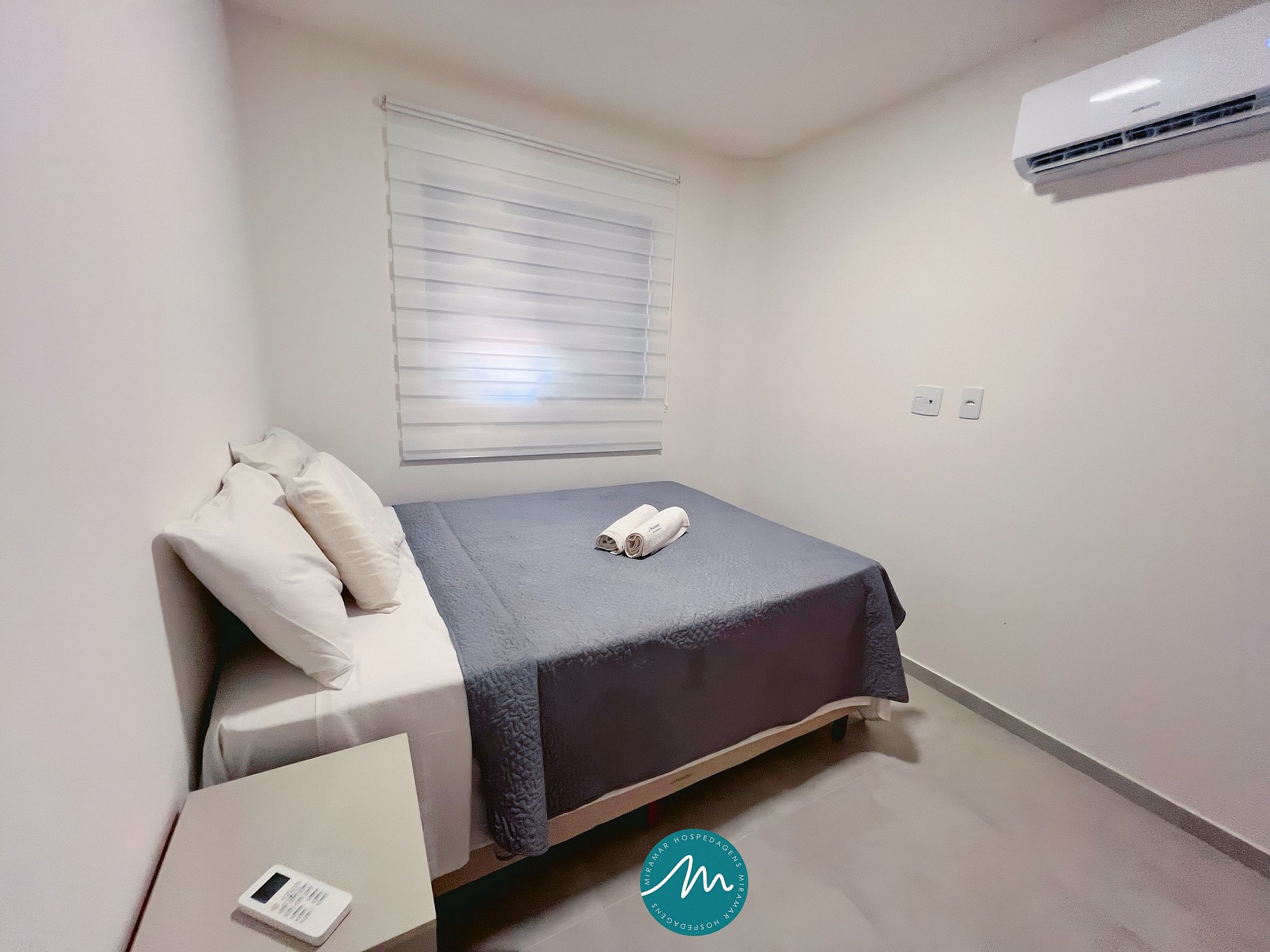 O segundo quarto também tem cama de casal e ar-condicionado, garantindo o mesmo conforto.