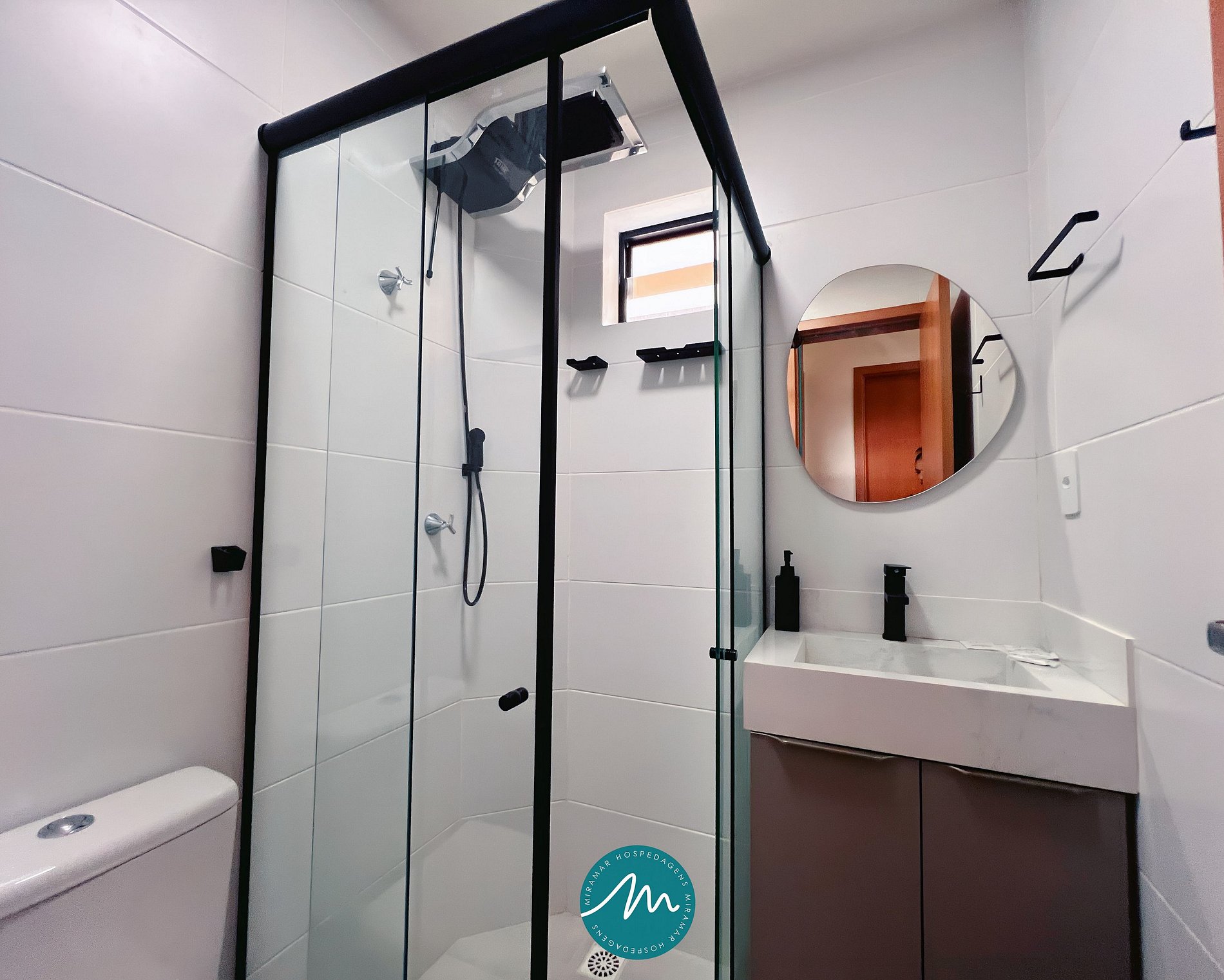 Há ainda um banheiro social com ducha e água quente, oferecendo praticidade para todos.
