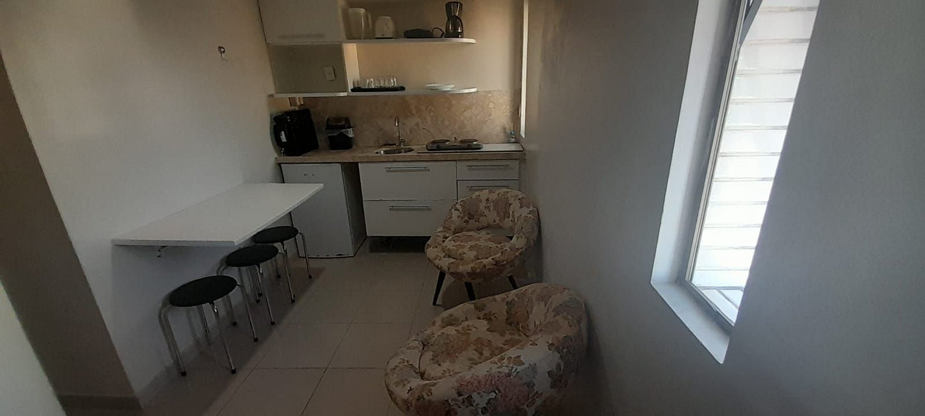 A diária da acomodação não inclui café da manhã, com o intuito de tornar o preço mais atrativo. Além disso, o apartamento dispõe de todos os eletrodomésticos e utensílios de cozinha.