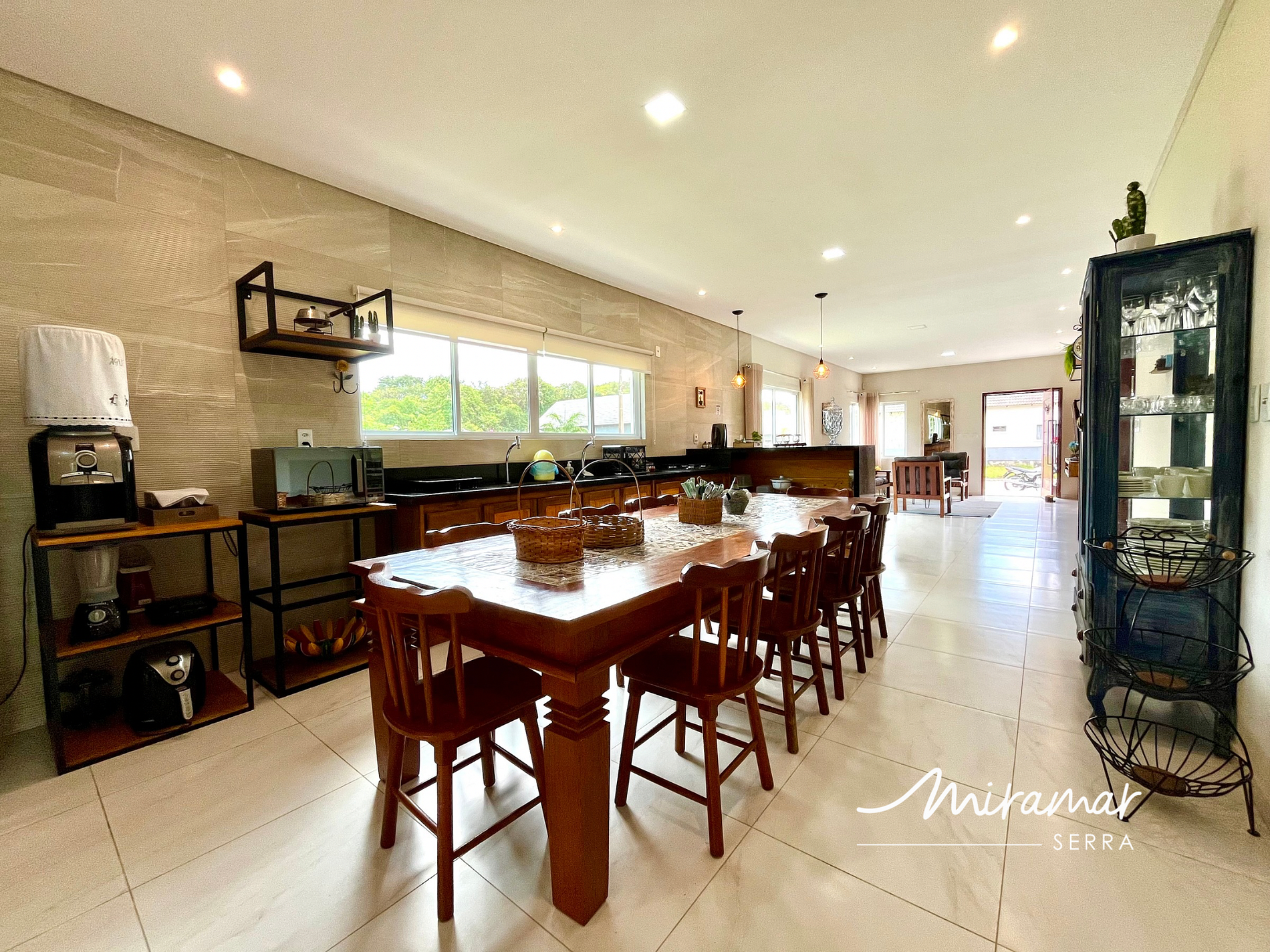 O imóvel conta com 3 suítes confortáveis, cozinha ampla e totalmente equipada com fogão, geladeira, freezer, micro-ondas e louça completa, além de uma sala de estar aconchegante e Wi-Fi para quem deseja se conectar sem abrir mão do sossego. A área gourmet com churrasqueira e a varanda espaçosa tornam o espaço perfeito para reunir amigos e familiares enquanto se aprecia o pôr do sol sobre as serras.