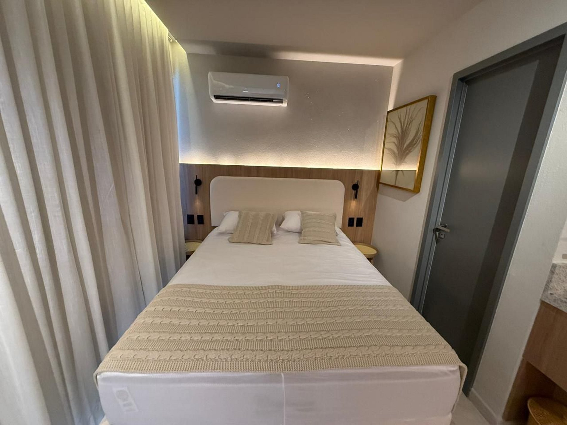 Pensado para acomodar até 2 hóspedes, o flat oferece uma cama de casal confortável, ar-condicionado para garantir noites fresquinhas e uma varanda com vista lateral para o mar, ideal para relaxar e apreciar a brisa oceânica.