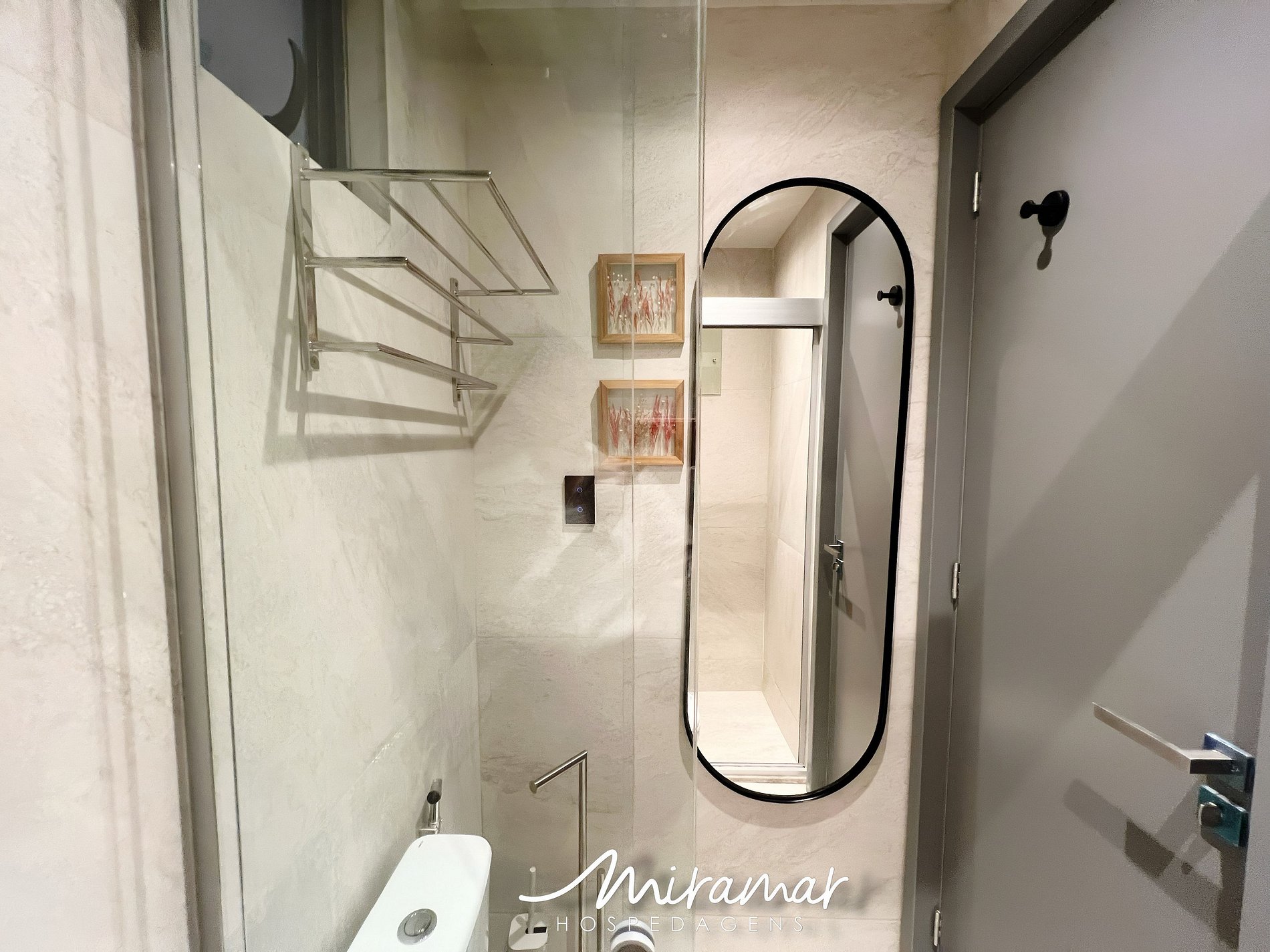 O flat também dispõe de Alexa, facilitando o uso por meio de um quadro com os comandos disponíveis, tornando a estadia ainda mais prática e tecnológica.