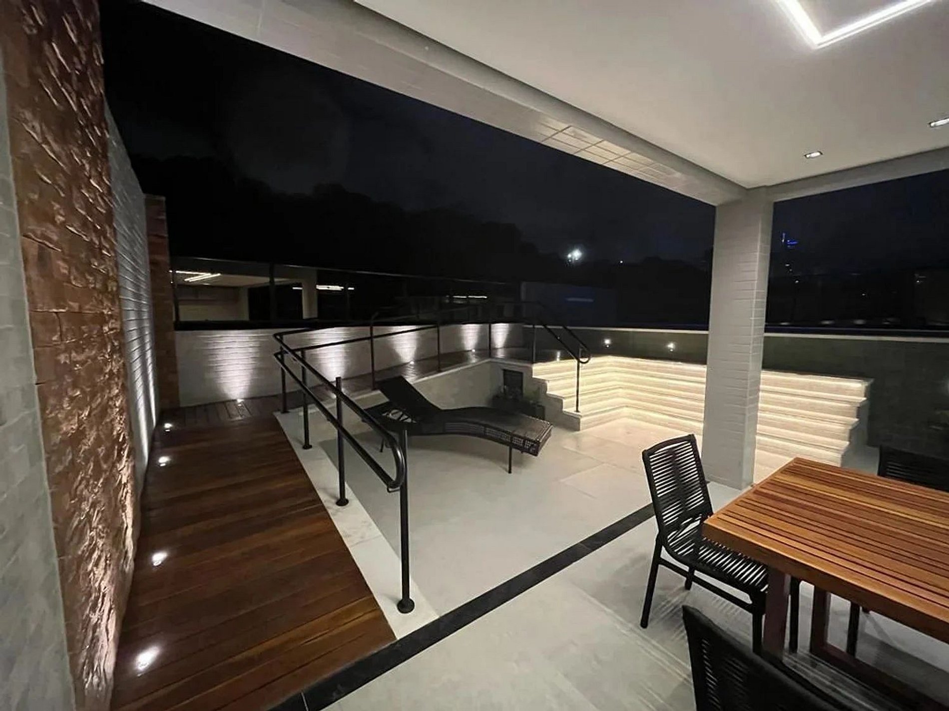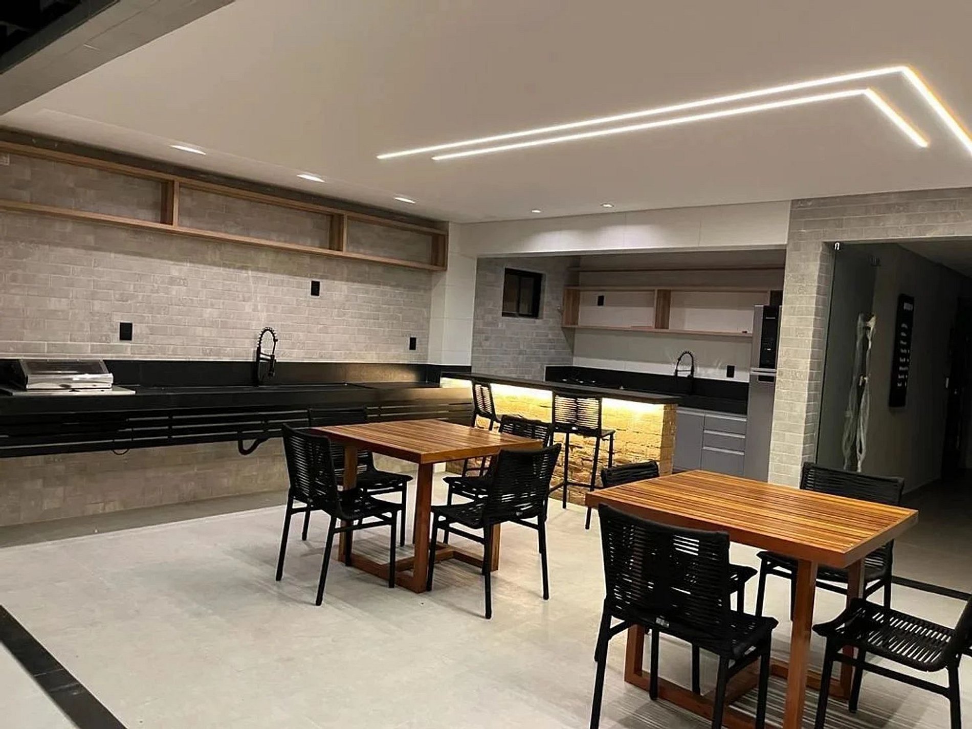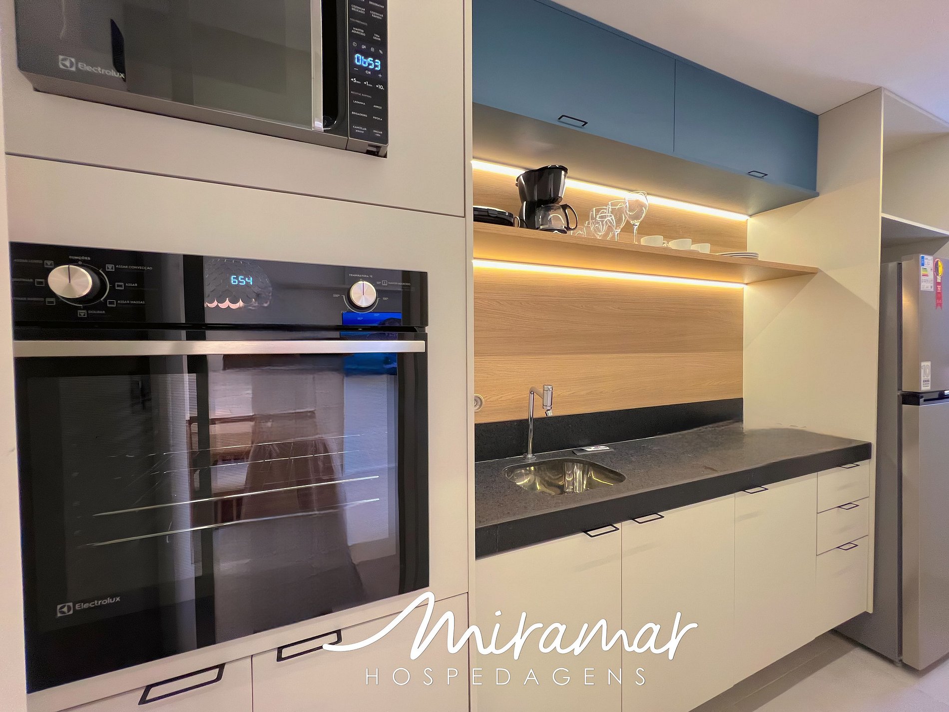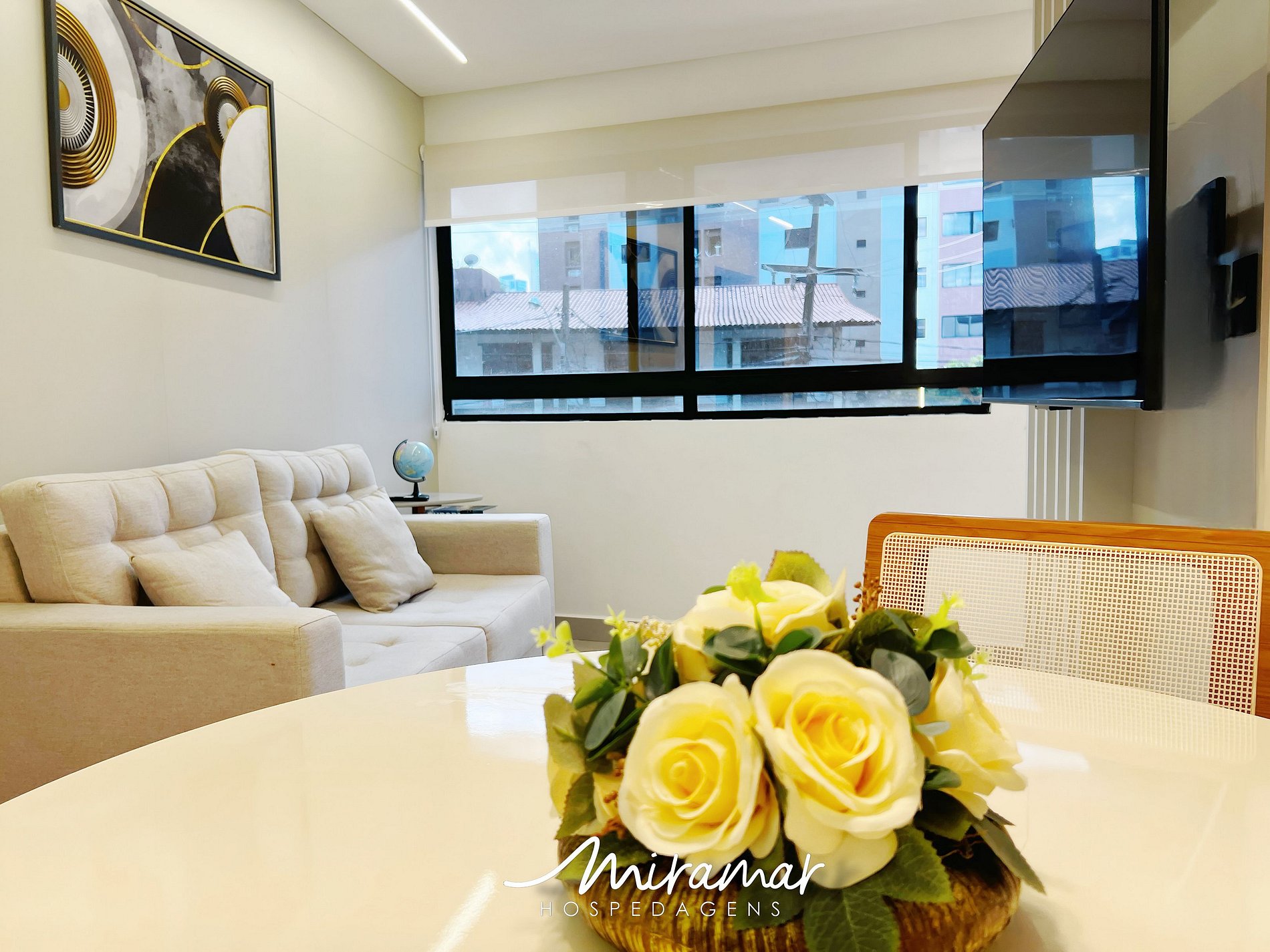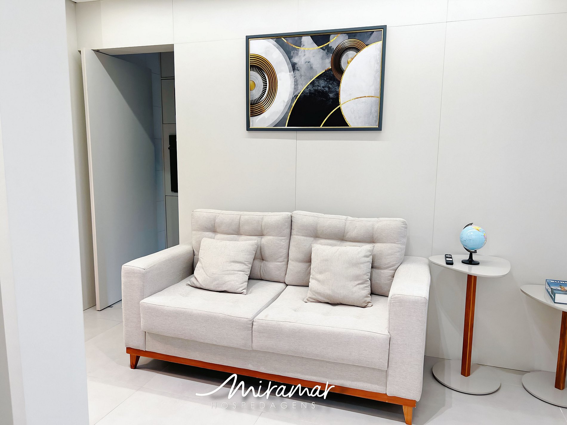 Flat récem entregue, com uma decoração minimalista, clara e aconchegante. A sala tem uma ampla janela que areja o ambiente, o sofá é um convite para o descanso. Ao lado, uma mesa redonda com 3 cadeiras que pode servir para realizar refeições ou para uso do Notebook. O espelho que vai do chão ao teto da a sensação de amplitude. O belo lustre que fica sob a mesa, completa o espaço. A cozinha é compacta, com microondas, forno elétrico, sanduicheira, cafeteira, geladeira, louças e talheres de acordo com a quantidade de hóspedes que o apartamento acomoda.