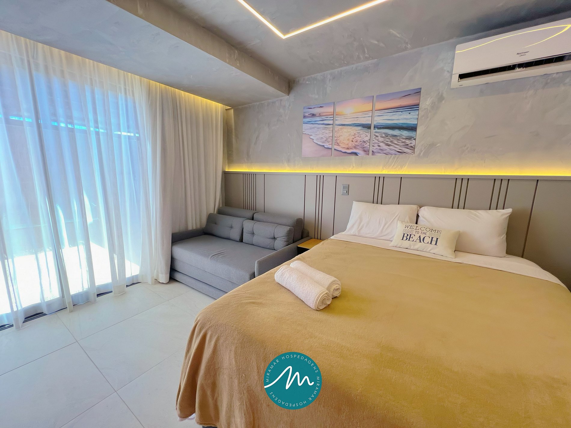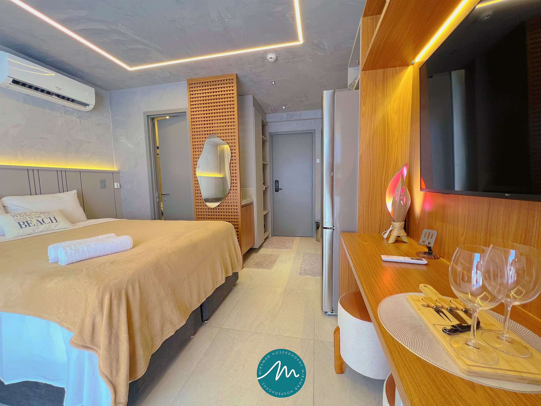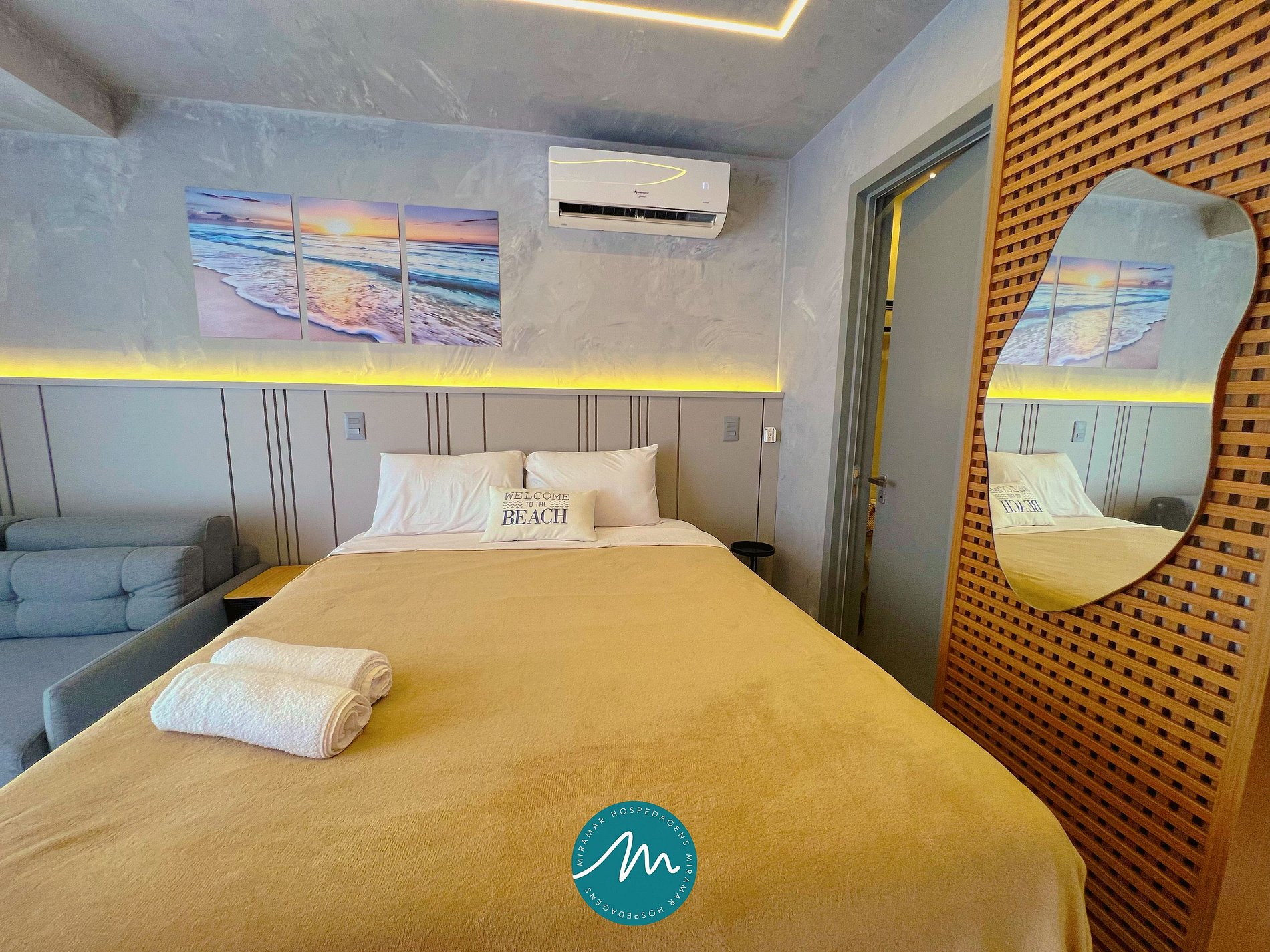 Os hóspedes têm acesso a academia bem equipada, lavanderia e áreas de lazer completas. No terraço, é possível aproveitar piscinas, SPA e uma vista encantadora da orla, além. O prédio também conta com brinquedoteca, ideal para famílias.