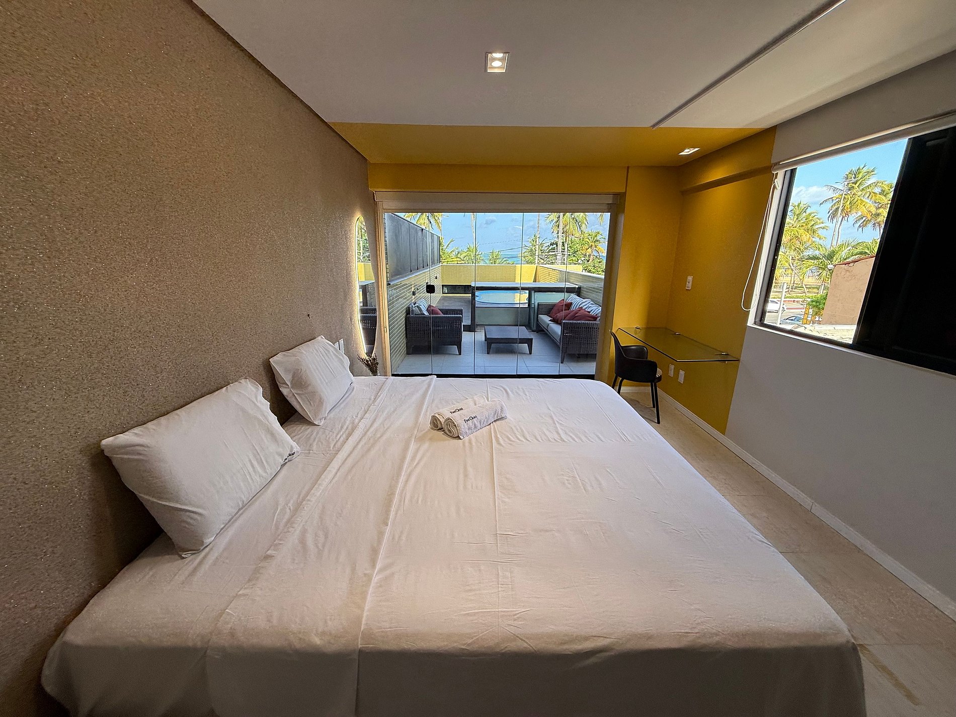 A unidade é bem distribuída em sala, cozinha e quarto, oferecendo conforto e privacidade. O grande destaque é o terraço/varanda privativa com piscina privativa, que revela uma linda vista para a praia perfeito para relaxar, aproveitar o sol ou curtir momentos únicos ao som do mar.