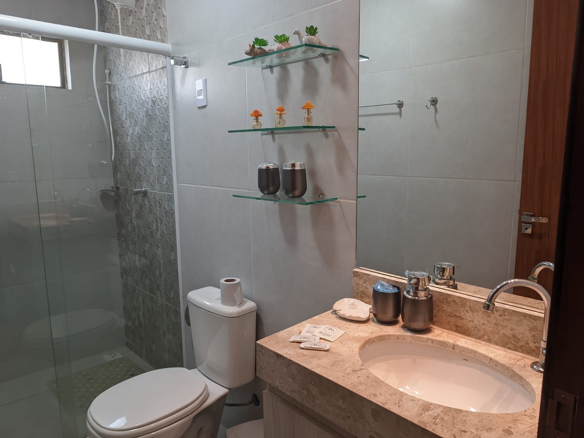 8. ITENS DE CORTESIA: Deixamos itens básicos para o início da sua estadia: detergente, papel higiênico e amenities (sabonete, shampoo). A reposição é de responsabilidade do hóspede conforme necessário.