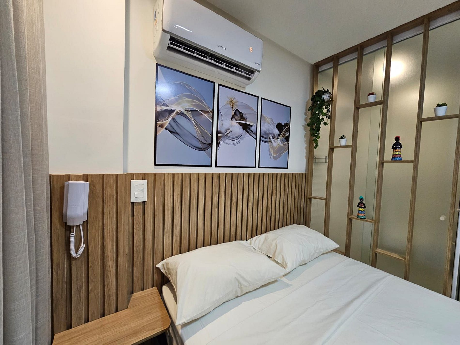 O flat proporciona uma estadia confortável e relaxante com uma cama de casal espaçosa, ideal para noites de sono revigorantes. Para o entretenimento, uma Smart TV está disponível, garantindo momentos de descanso com uma variedade de opções de conteúdo.