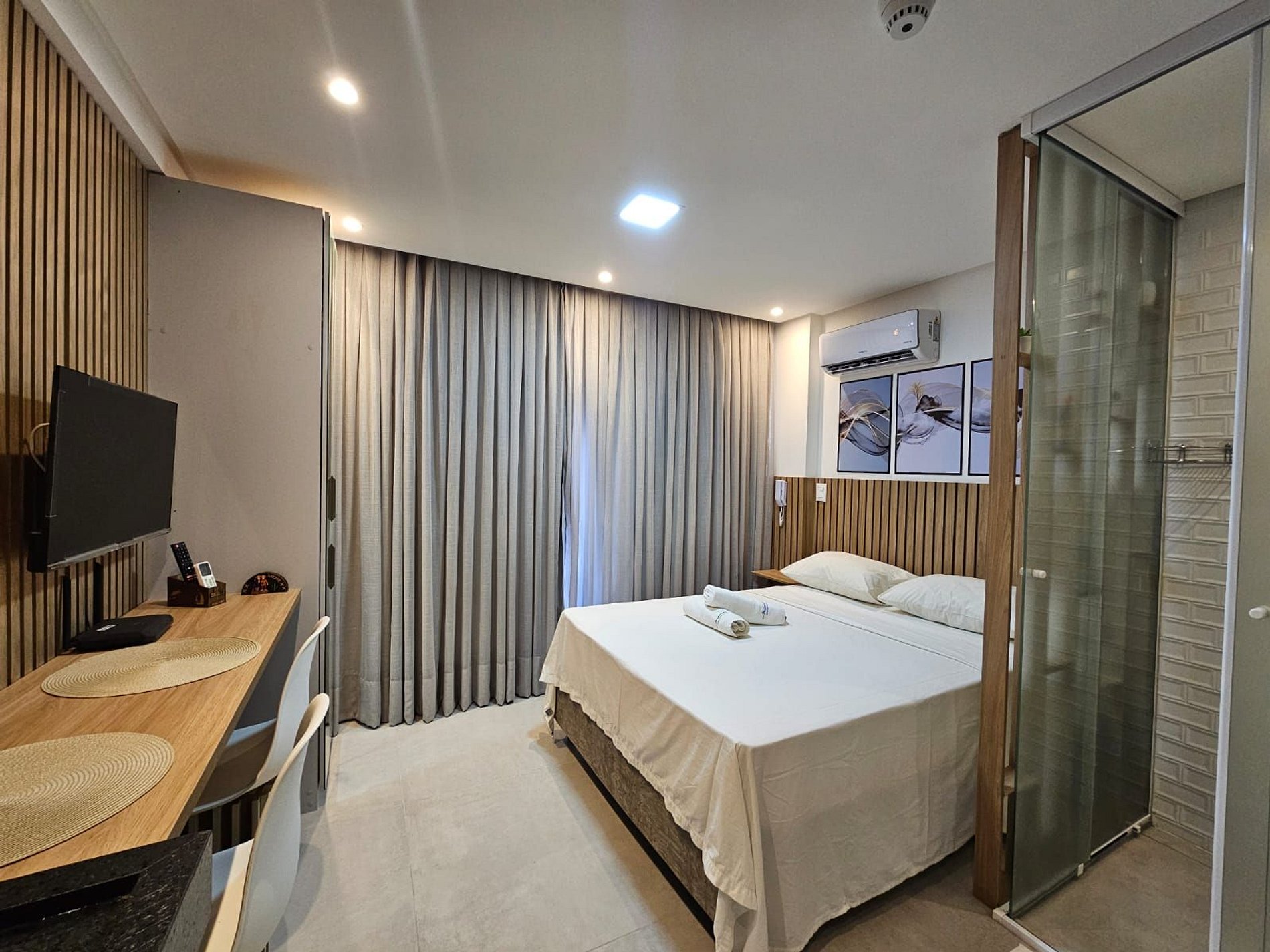 Nosso objetivo é proporcionar um ambiente acolhedor e funcional, onde você possa desfrutar de uma estadia agradável e tranquila. Contando com ao acesso da piscina, na cobertura que proporciona uma vista privilegiada para o mar.