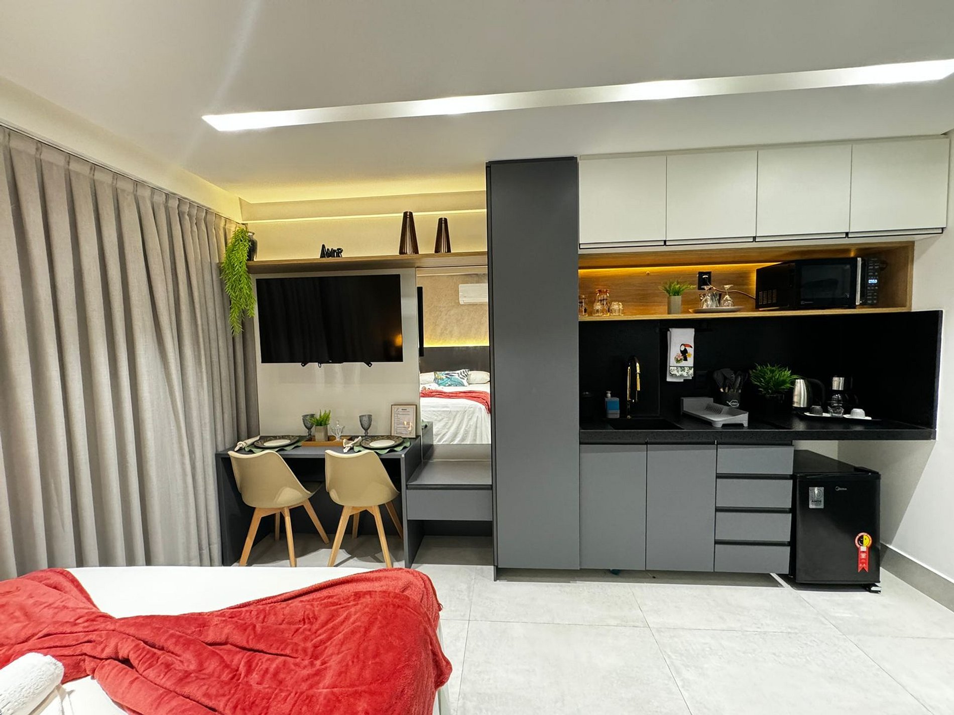 A poucos passos da praia, este encantador flat é um verdadeiro oásis! Com uma cozinha compacta totalmente equipada, você terá tudo à mão para uma estadia agradável. A cama de casal, a decoração moderna torna o ambiente acolhedor e confortável. O chuveiro, separado do toalete, oferece praticidade e bem-estar. É o local ideal para quem busca uma experiência memorável à beira-mar!