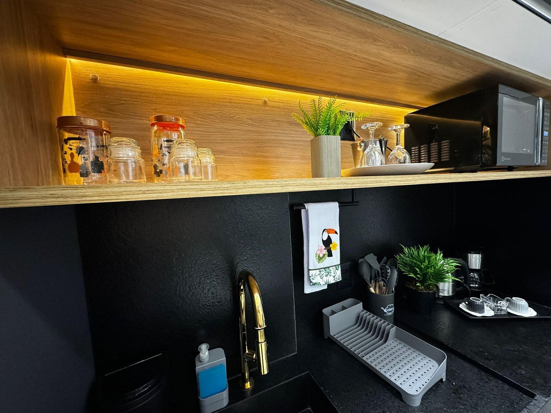 Deixamos itens básicos para o início da sua estadia: detergente, papel higiênico e amenities (sabonete, shampoo). A reposição é de responsabilidade do hóspede conforme necessário.