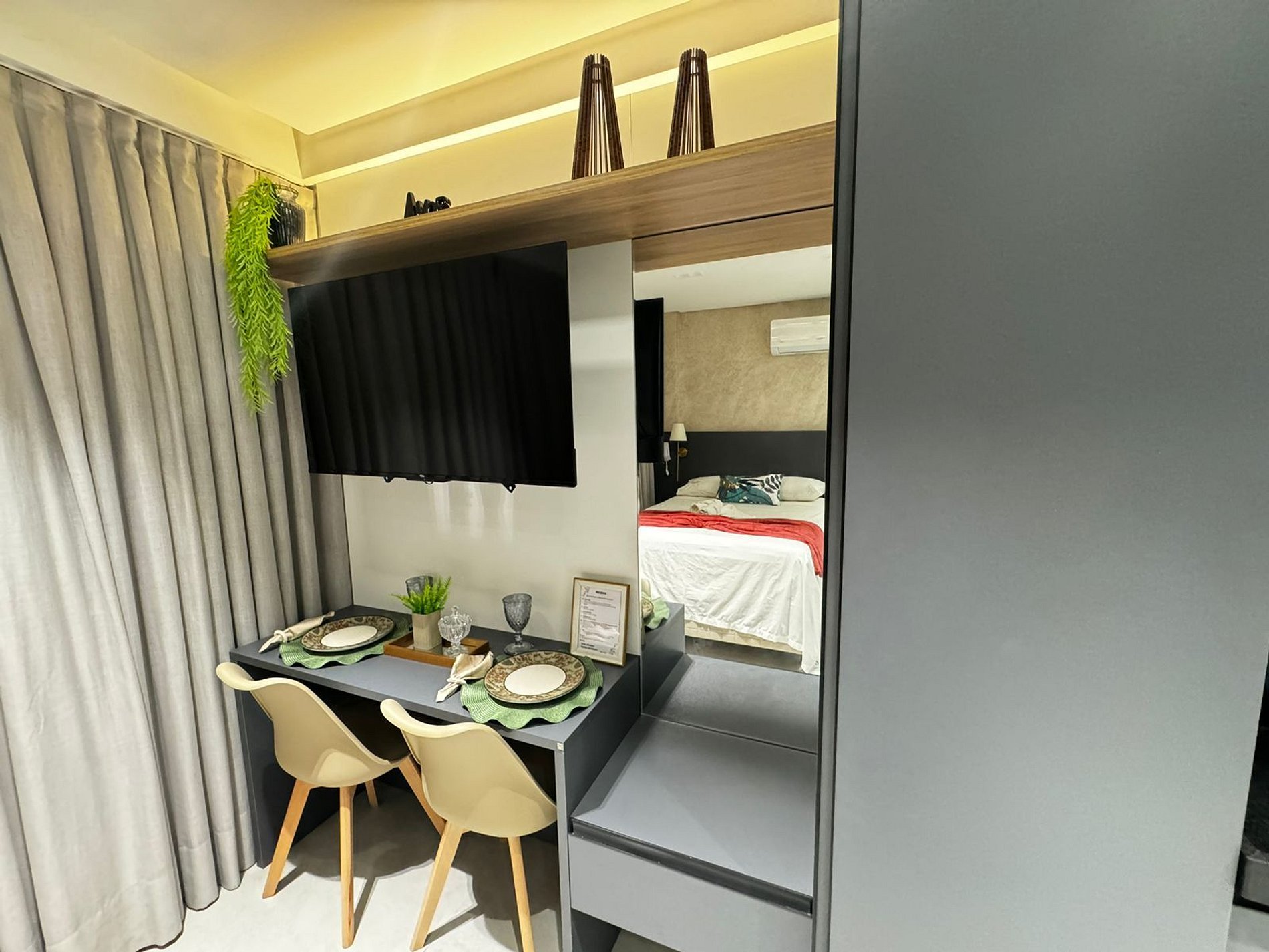 Nosso objetivo é proporcionar um ambiente acolhedor e funcional, onde você possa desfrutar de uma estadia agradável e tranquila. Contando com ao acesso da piscina, na cobertura que proporciona uma vista privilegiada para o mar.