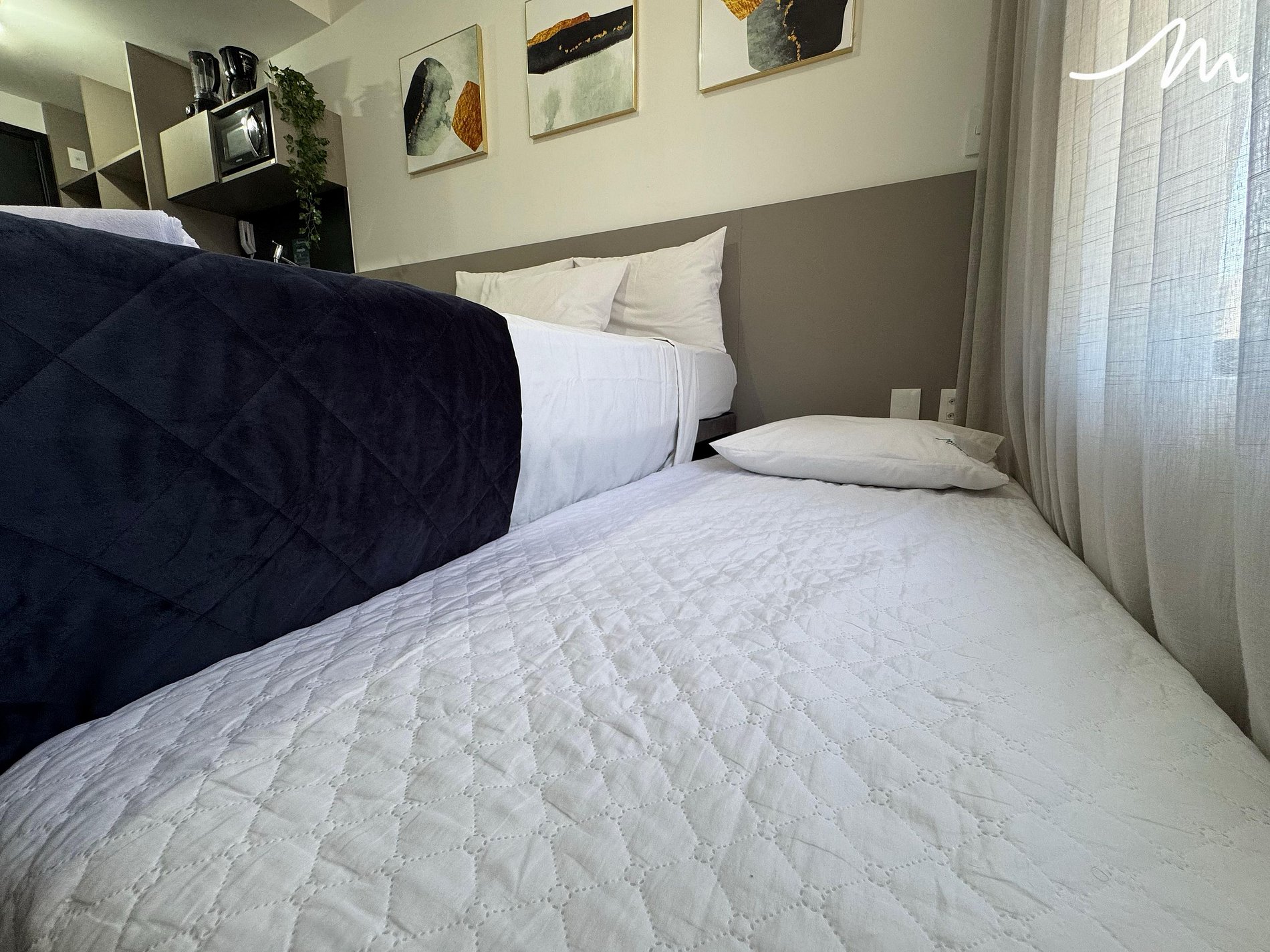 Nosso sofisticado flat proporciona uma estadia confortável e prática, com uma cama de casal, uma cama auxiliar e uma smart TV para momentos de entretenimento e descanso. Equipado com utensílios essenciais como frigobar, micro-ondas e sanduicheira, é perfeito para preparar refeições rápidas e saborosas. Combinando conveniência e conforto, nosso flat oferece uma experiência de estadia verdadeiramente excepcional.