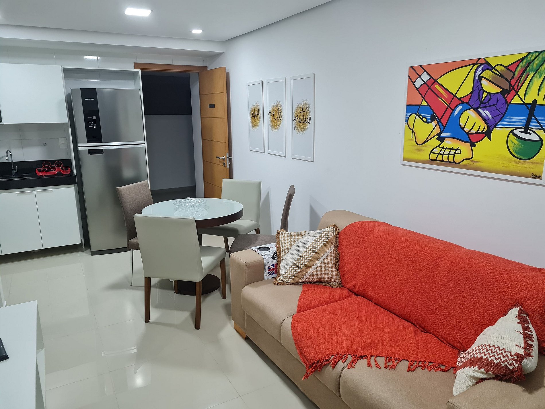Apartamento completo e aconchegante, ideal para uma estadia confortável e prática. Totalmente equipado com Smart TV no quarto, eletrodomésticos, eletroportáteis, utensílios básicos e enxoval completo de cama, mesa e banho. Possui 2 quartos, sendo 1 suíte com cama de casal e 1 quarto com duas camas de solteiro, além de banheiro social. A sala conta com sofá e mesa de jantar para 4 pessoas, e a cozinha é completa, oferecendo liberdade e comodidade durante toda a estadia.
