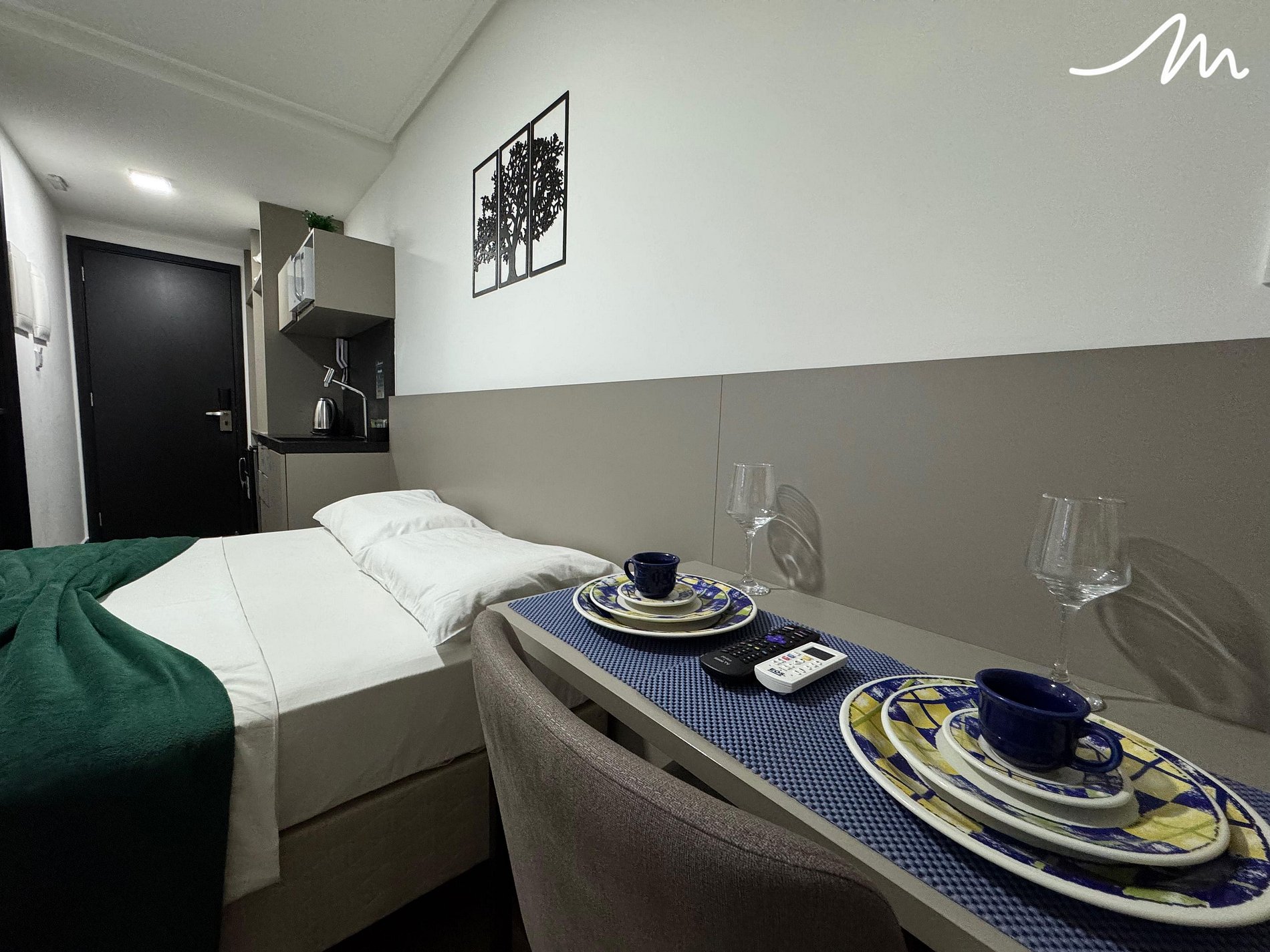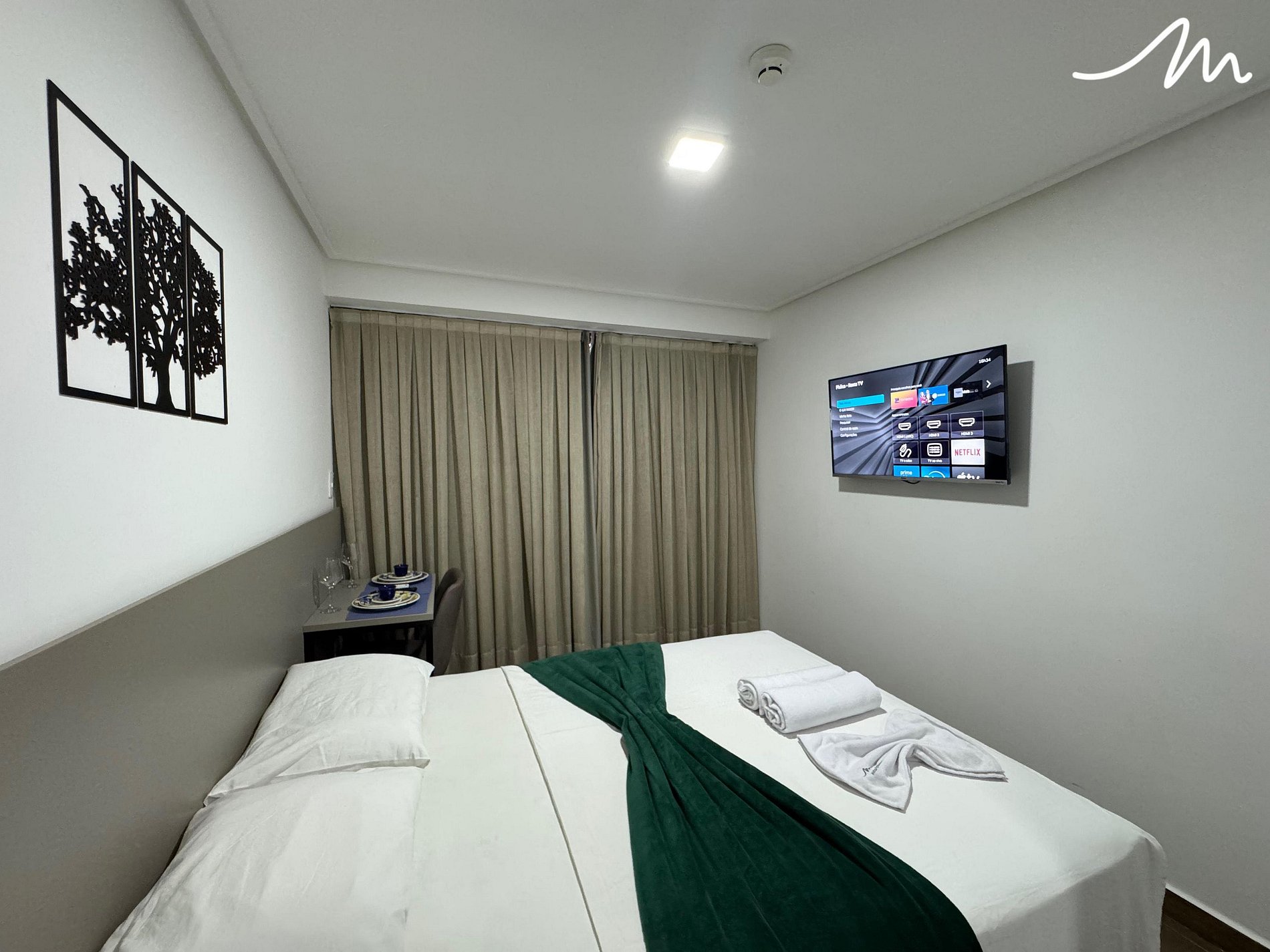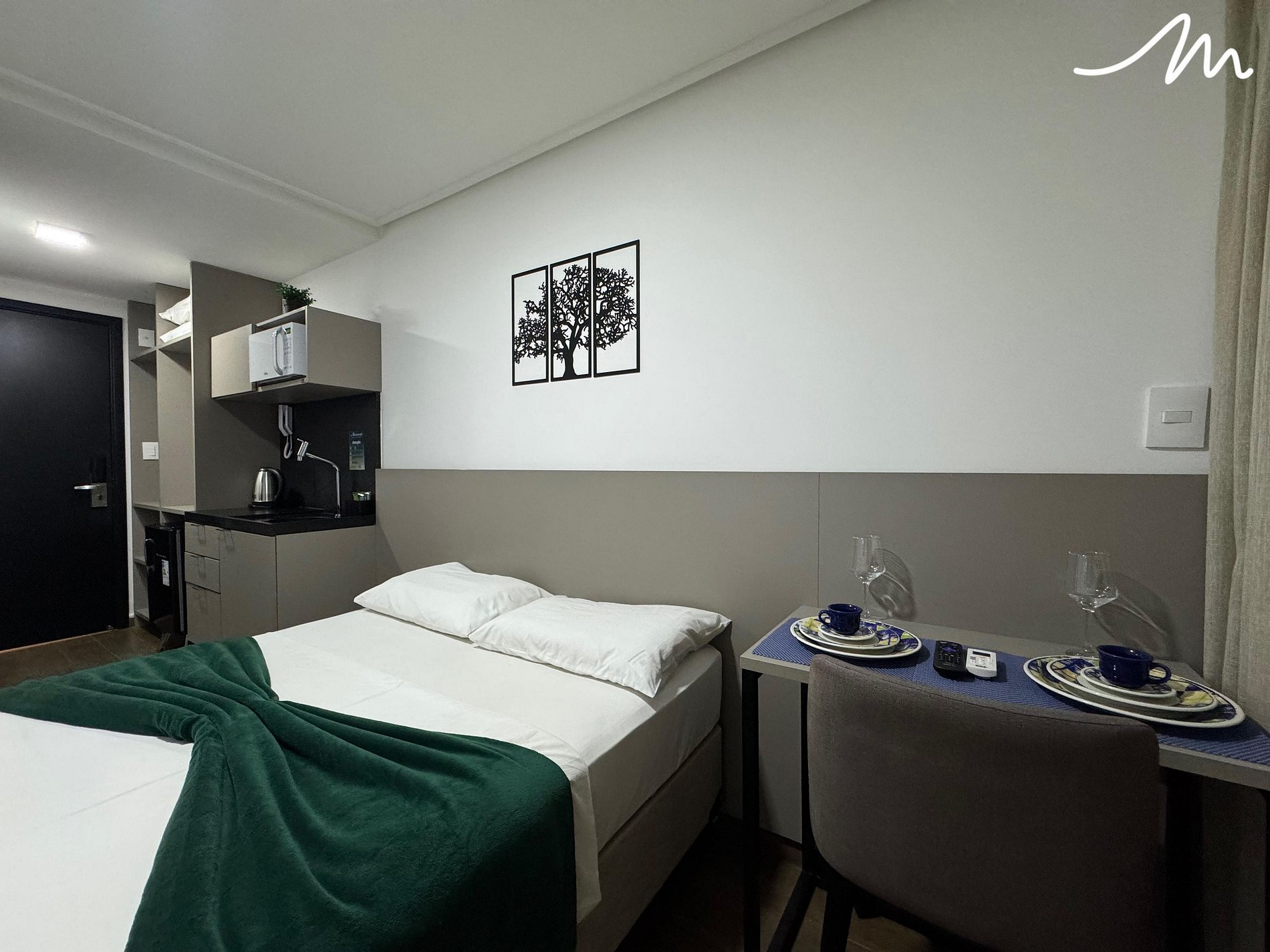 Nosso flat oferece uma estadia confortável com uma cama de casal , ar condicionado e uma TV para suas horas de lazer. O flat está equipado com utensílios essenciais como frigobar, micro-ondas e sanduicheira, facilitando a preparação de refeições rápidas e práticas. Combinando sofisticação e funcionalidade, nosso flat oferece uma experiência única, ideal para quem busca um refúgio aconchegante e bem localizado.