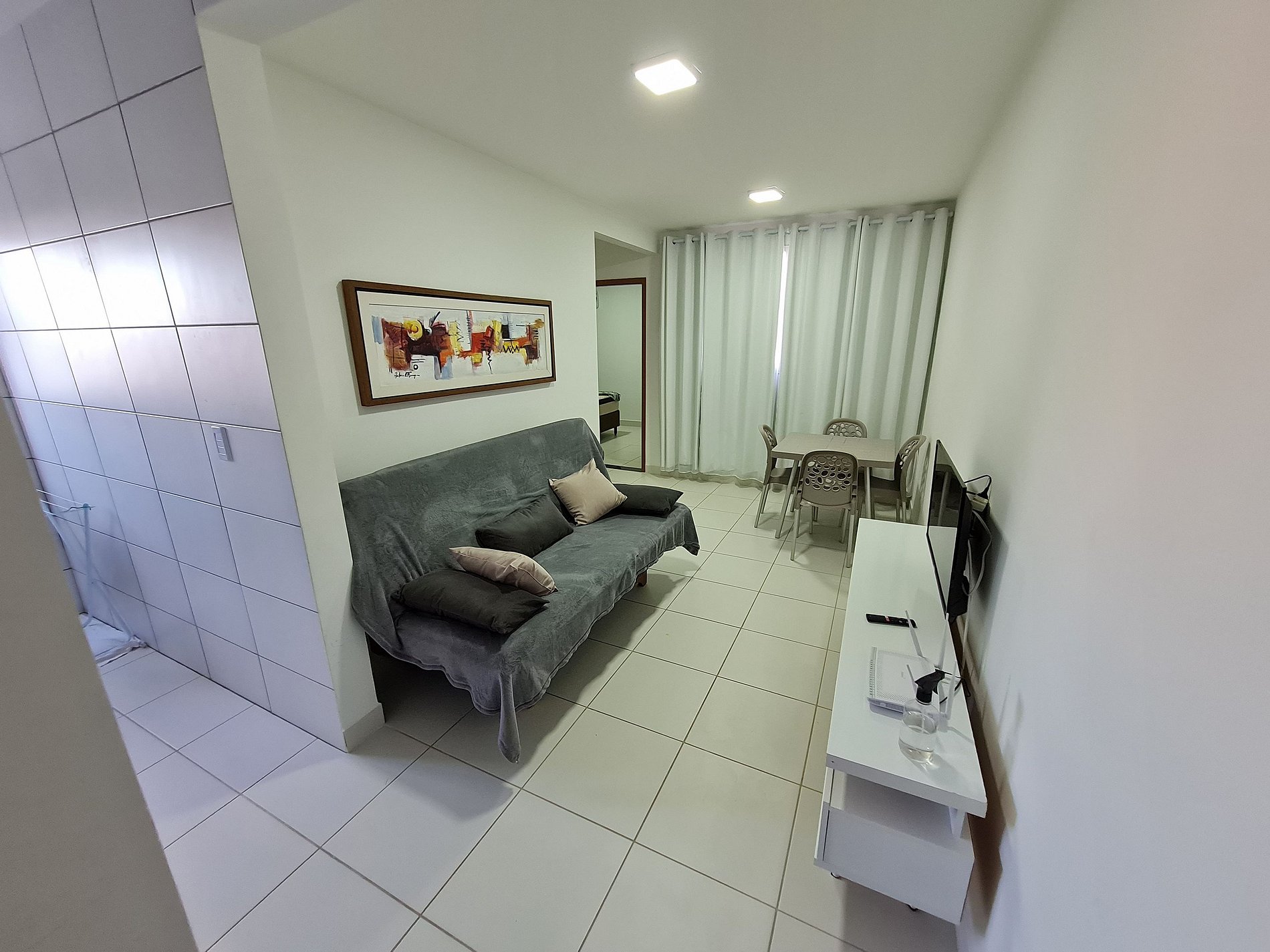 O apartamento possui dois quartos 1 com ar condicionado e o outro com ventilador, sendo um quarto com cama de Casal e o outro com duas camas Solteirão com uma cama auxiliar. Cozinha com Geladeira, cooktop, cafeteira, espremedor de suco, sanduicheira, liquidificados, pratos, talheres entre outros itens. Sala com sofá retrátil, mesa com 04 cadeiras, Smart TV. Condomínio com portaria 24h, Piscina, Quadra de Vôlei, Playground, Bicicletário, Churrasqueira, Academia e 01 (uma) Vaga de Garagem.
