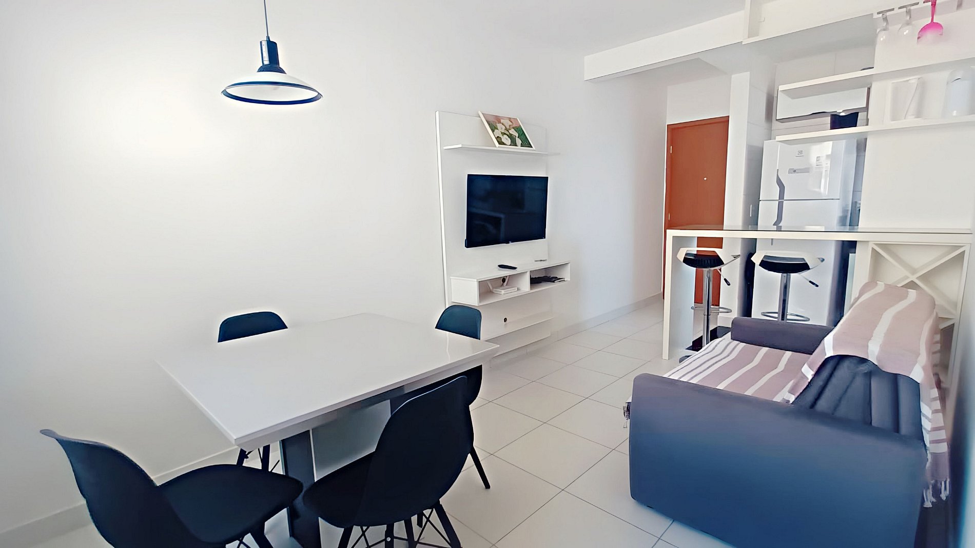 Localizado a poucos metros da praia, o apartamento acomoda até 6 pessoas, com cama de casal, beliche e sofá-cama. O ambiente climatizado conta com ar-condicionado para o seu conforto. Na cozinha compacta, você encontra geladeira, fogão, sanduicheira e liquidificador, ideais para refeições rápidas. Além disso, o Wi-Fi está disponível para sua praticidade. Contamos também com máguina de lavar e Smart Tv.