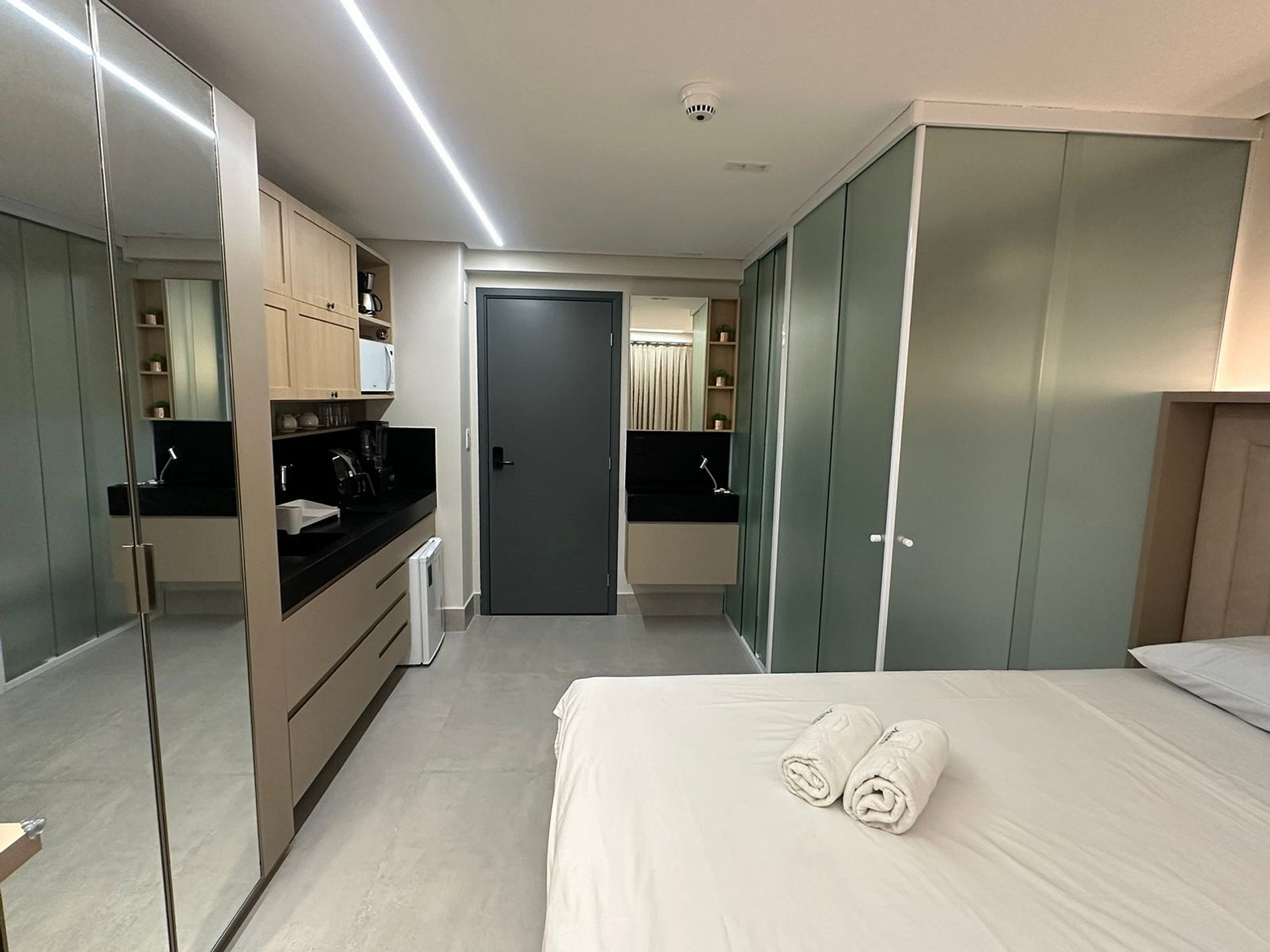 Esse flat a apenas 50 metros da praia realmente parece um refúgio incrível! A combinação de uma cozinha compacta totalmente equipada e a cama de casal com iluminação aconchegante cria um ambiente perfeito para relaxar. A separação do chuveiro e do sanitário é uma ótima adição para a comodidade. É um espaço ideal para quem busca conforto e proximidade com o mar!