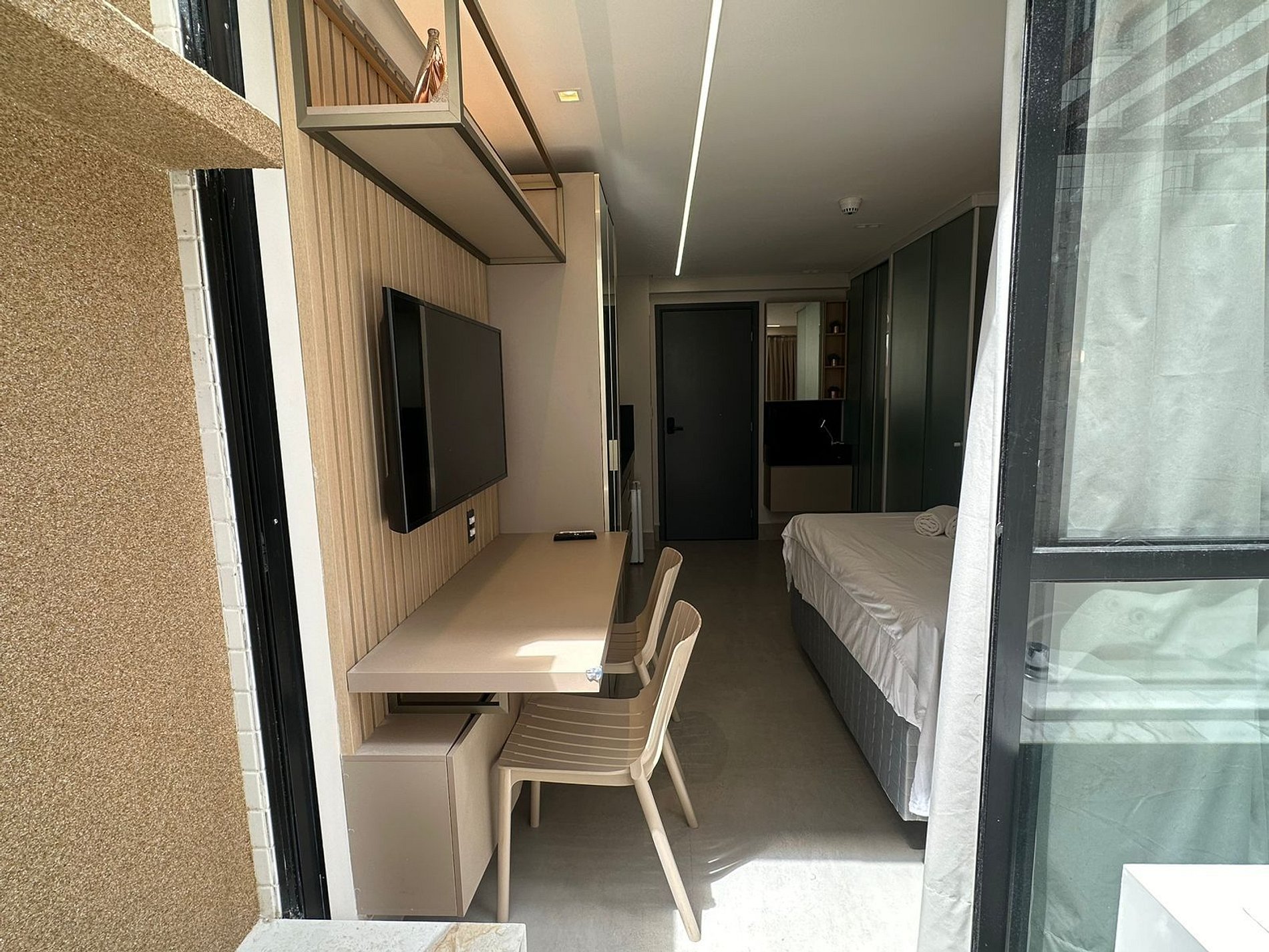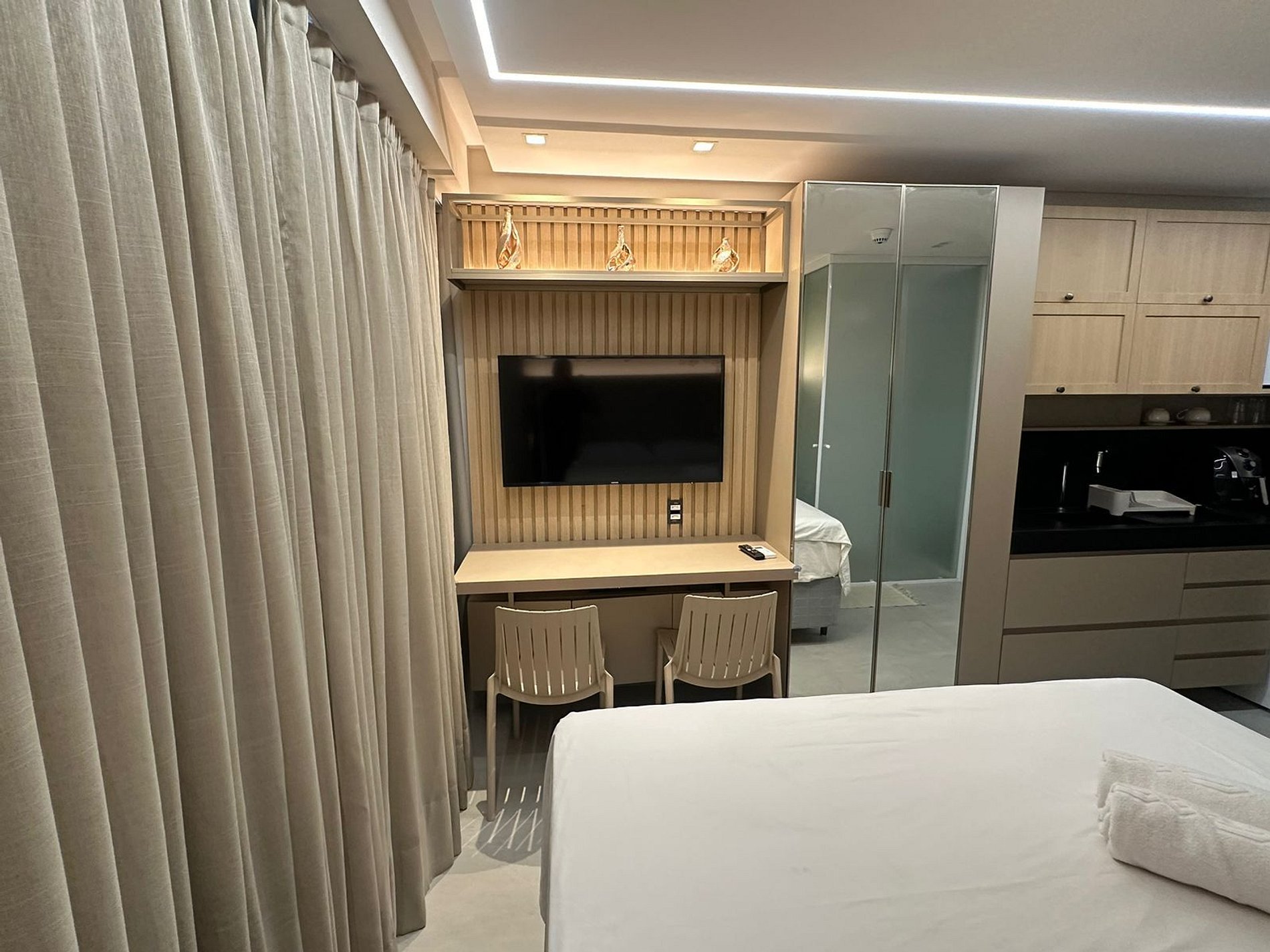 Esse flat a apenas 50 metros da praia realmente parece um refúgio incrível! A combinação de uma cozinha compacta totalmente equipada e a cama de casal com iluminação aconchegante cria um ambiente perfeito para relaxar. A separação do chuveiro e do sanitário é uma ótima adição para a comodidade. É um espaço ideal para quem busca conforto e proximidade com o mar!