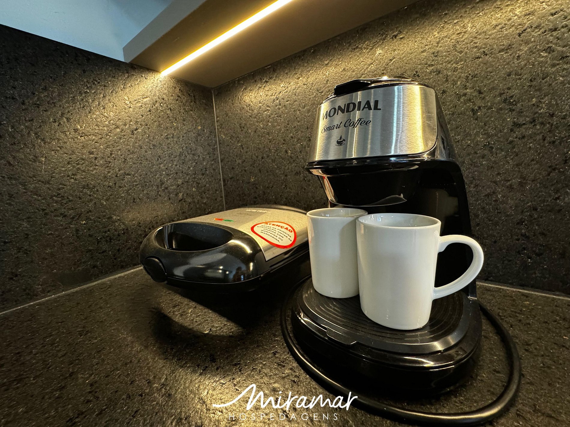 O flat oferece uma cama de casal aconchegante, garantindo noites de sono revigorantes. Para o seu entretenimento, há uma Smart TV e acesso Wi-Fi, perfeitos para momentos de lazer. A cozinha moderna é equipada com frigobar, micro-ondas e assadeira, facilitando a preparação de refeições rápidas e práticas, a decoração do quarto é moderna e aconchegante. Além disso, oferecemos enxoval de cama, com lençóis e toalhas e utensílios domésticos, para que você possa preparar e desfrutar das suas refeições com conforto.