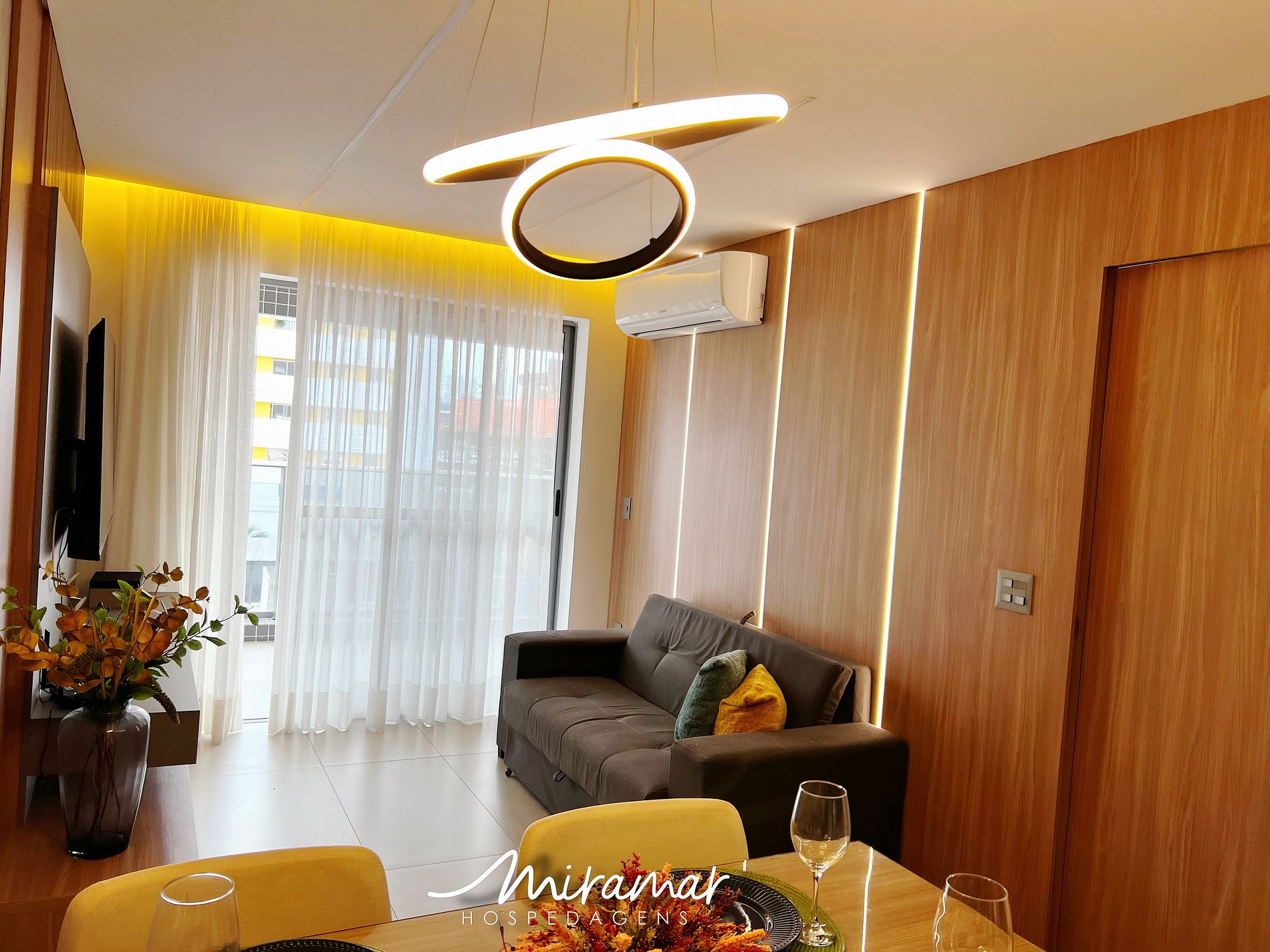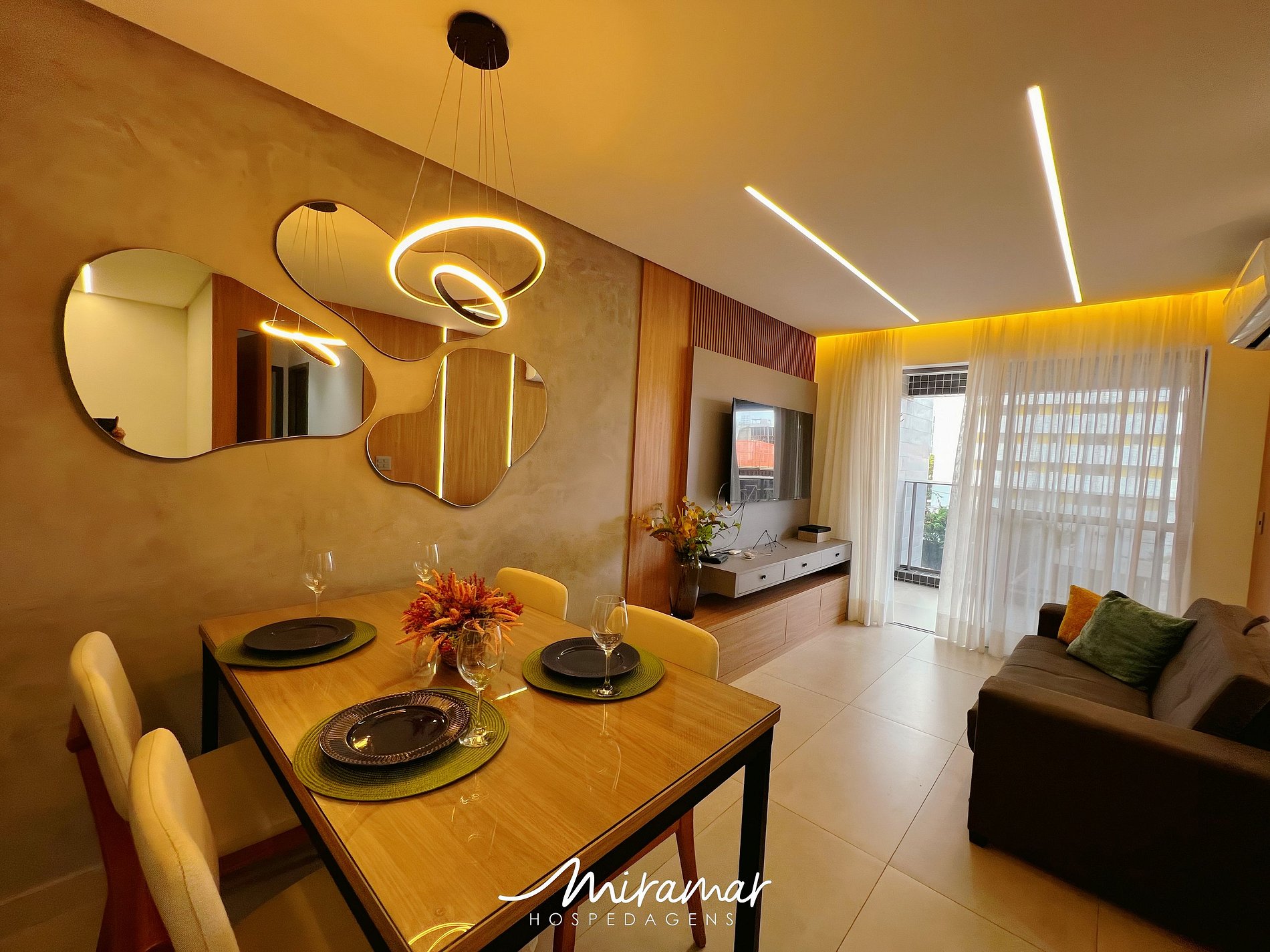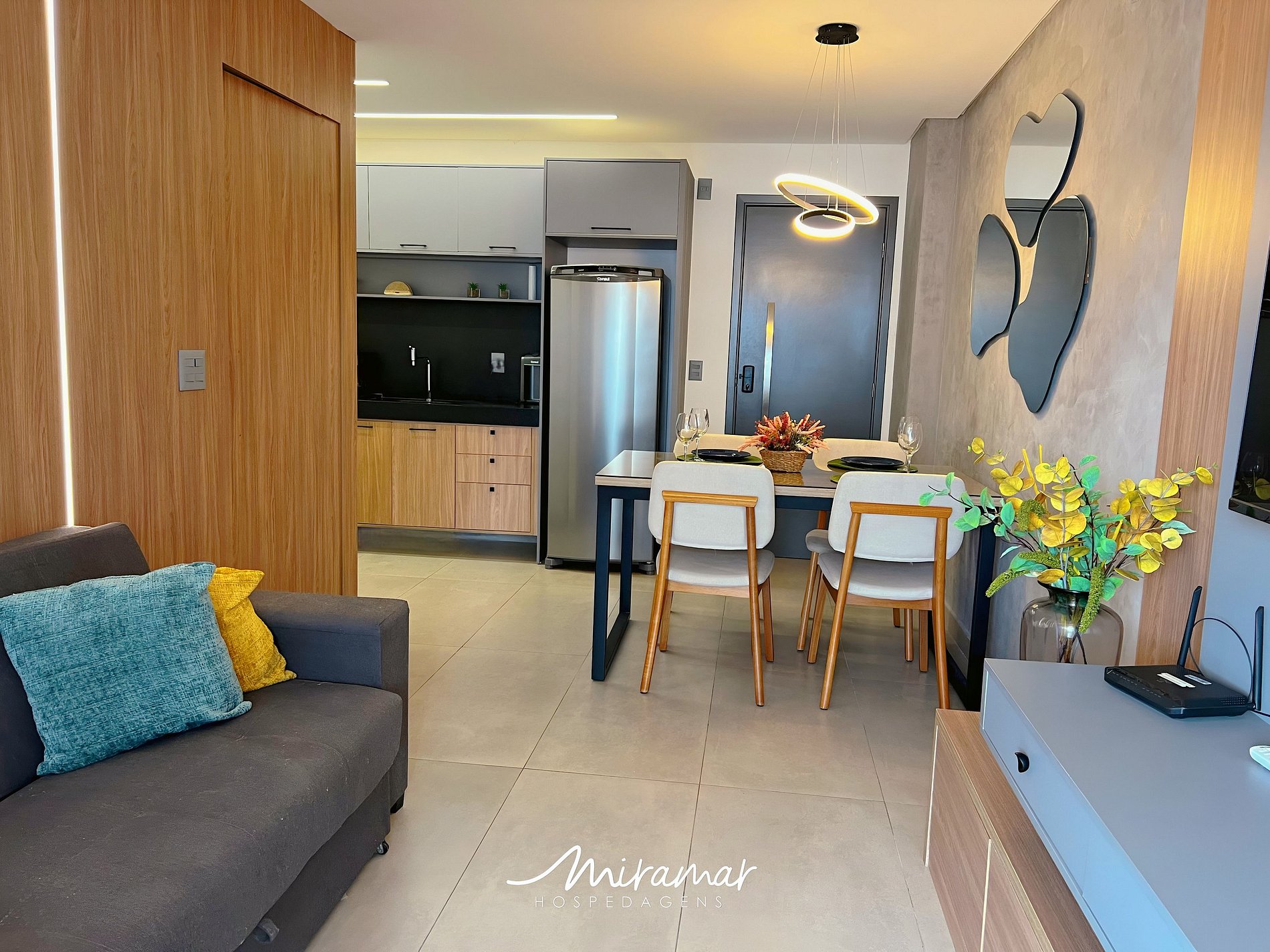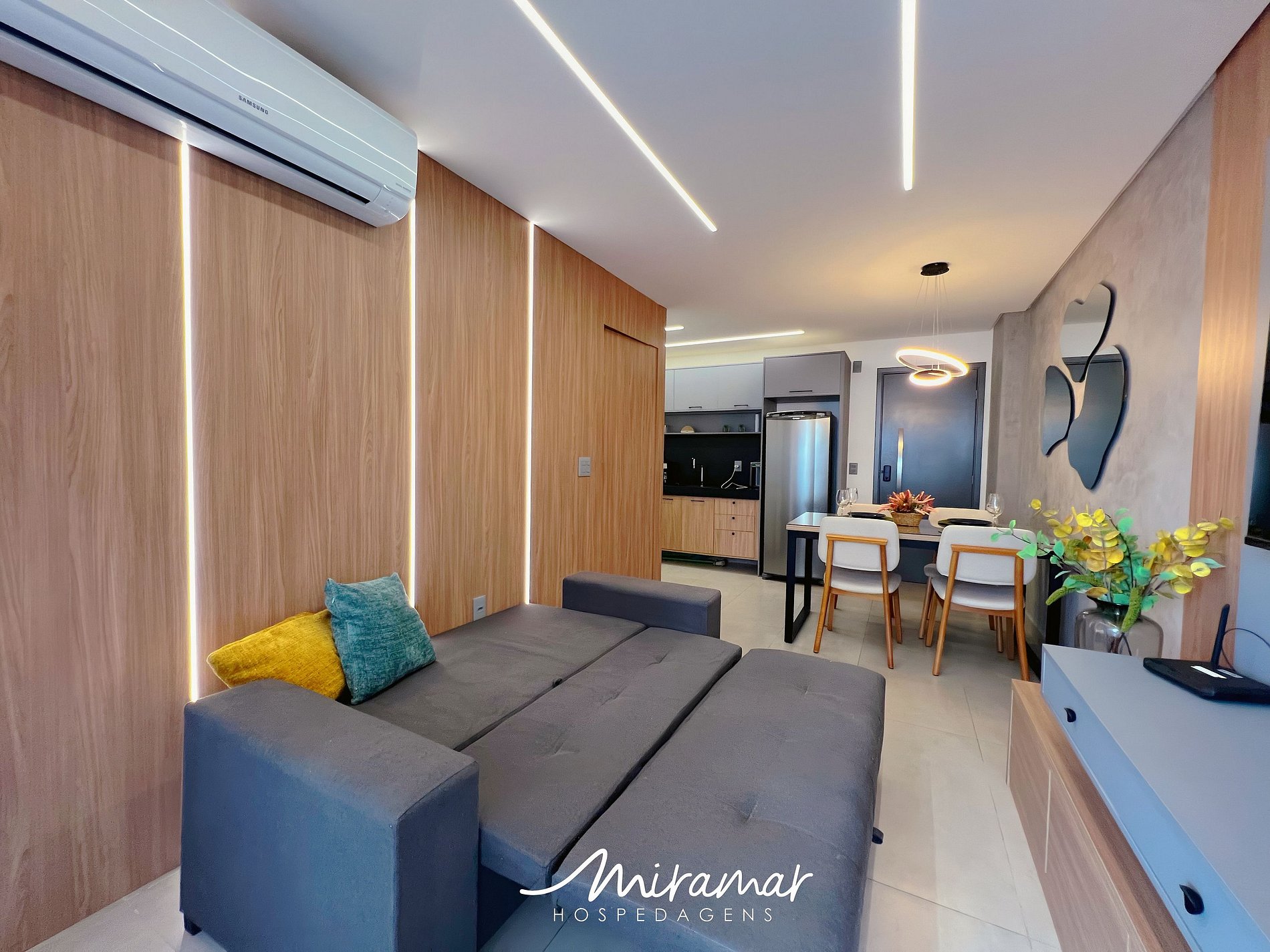 Sinta-se em casa neste apartamento encantador, pensado para unir conforto, praticidade e um toque especial de charme para sua estadia.A sala ampla é perfeita para relaxar, com sofá confortável, Smart TV, ar-condicionado e Wi-Fi ideal para maratonar séries, trabalhar ou simplesmente descansar. Ao abrir a porta de vidro, você acessa uma varanda agradável, perfeita para curtir a brisa do mar em uma rede. A cozinha é um verdadeiro convite para quem gosta de cozinhar! Equipada com geladeira, micro-ondas, cafeteira, airfryer, liquidificador, fogão, sanduicheira, além de louças e panelas aqui você encontra tudo para preparar desde o café da manhã até um jantar especial. A mesa de jantar multifuncional também serve como um ótimo espaço de trabalho.