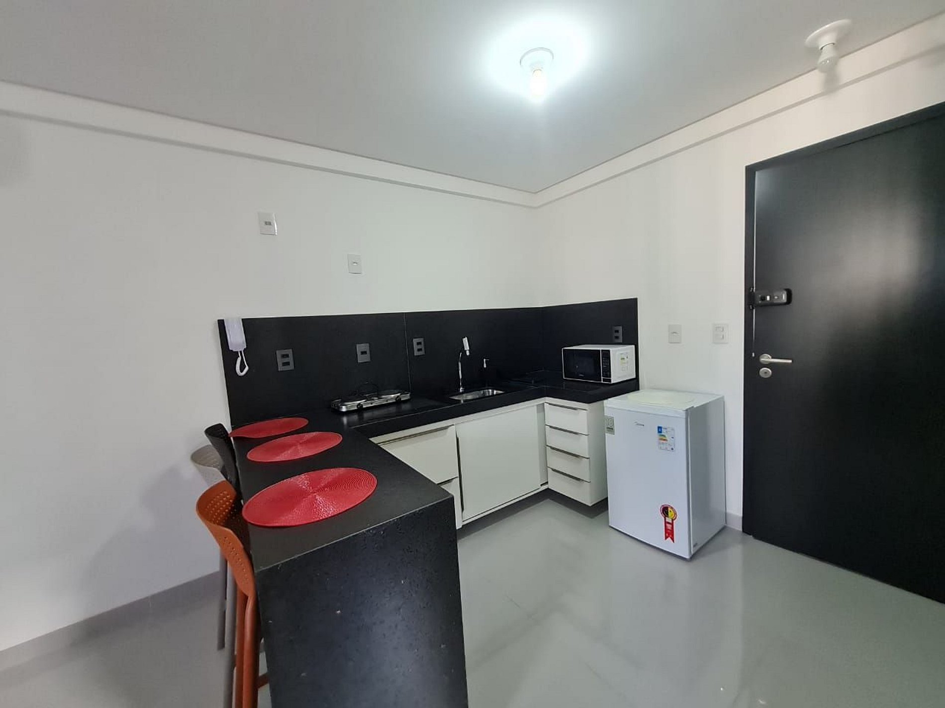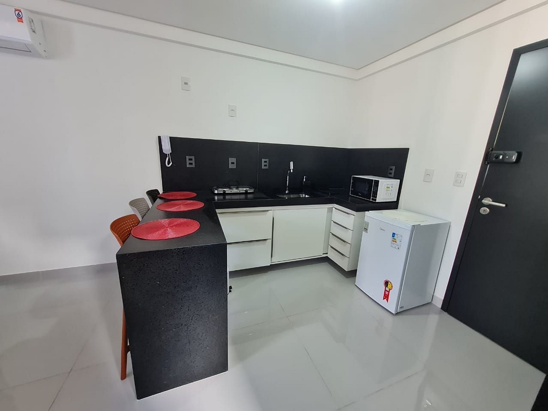 Bem vindo a este confortável flat no One Way. Esté unidade é equipada para receber até 3 hóspedes. A cozinha é compacta, composta pelos eletrodomésticos básicos para o preparo de refeições rápidas: frigobar, microondas e fogão de duas bocas. O balcão que divide os espaços, pode ser um lugar para usar o computador ou para tomar um almoço.