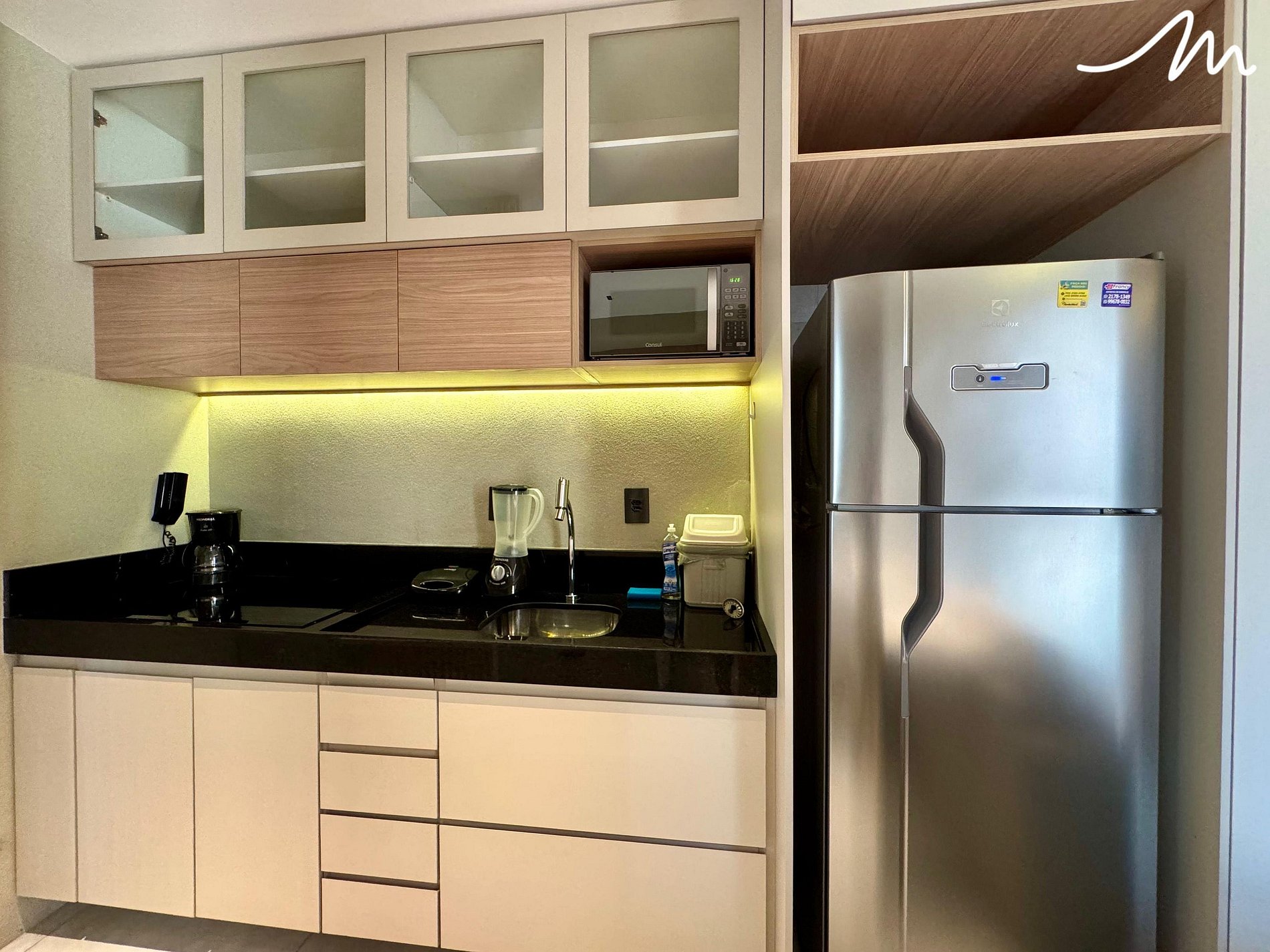 A cozinha foi planejada para oferecer tudo o que você precisa durante a sua estadia. Está equipada com micro-ondas, liquidificador, cafeteira, sanduicheira, geladeira, fogão de indução, além de louças e talheres. Assim, você pode preparar desde um café da manhã rápido até refeições completas com praticidade.