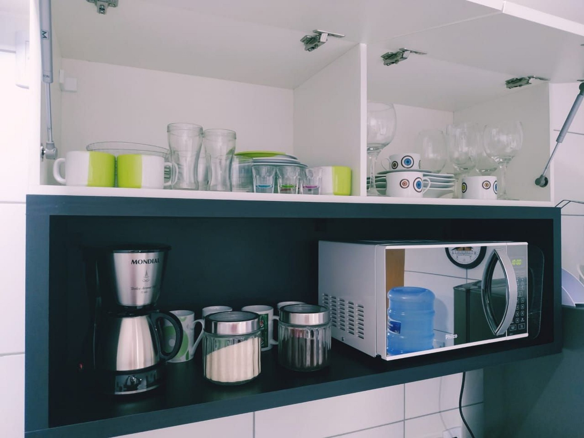 A diária da acomodação não inclui café da manhã, com o intuito de tornar o preço mais atrativo. Além disso, o apartamento dispõe de todos os eletrodomésticos e utensílios de cozinha.