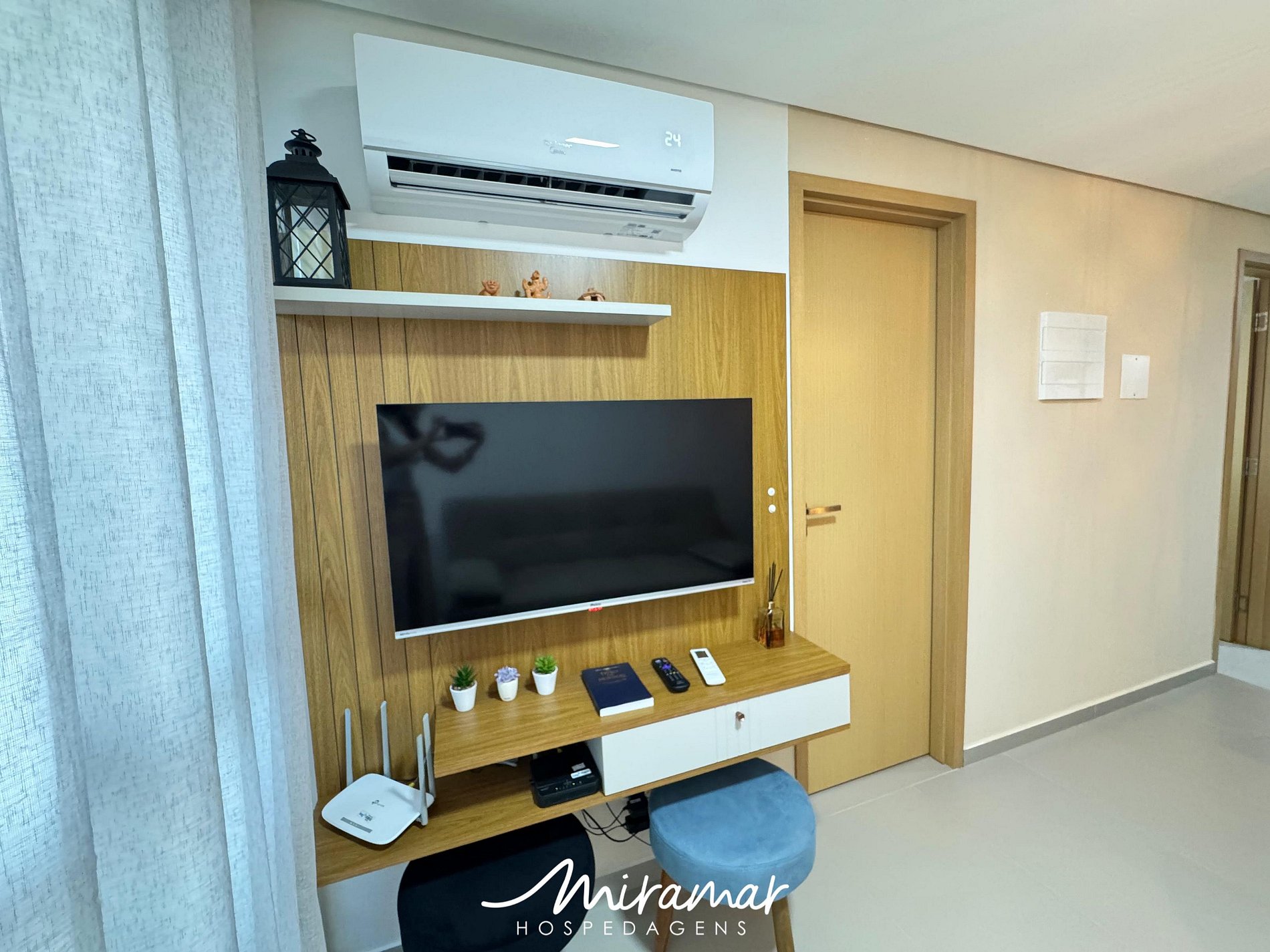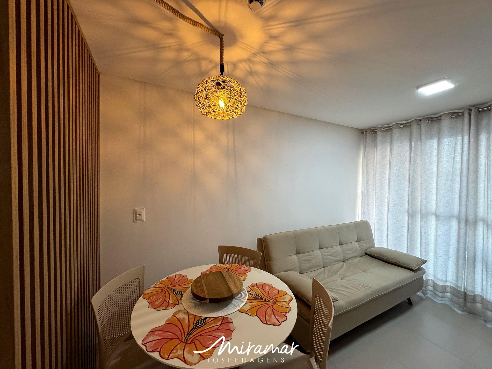 Com dois quartos aconchegantes, sendo uma suíte privativa com cama de casal e outro quarto com cama de solteiro, cama auxiliar e ventilador, sala de estar, cozinha e dois banheiros, o apartamento oferece a serenidade que você busca para relaxar após um dia cheio de atividades em João Pessoa. O ar-condicionado em ambos os quartos garante noites agradáveis e refrescantes. A sala, também climatizada, é equipada com um sofa confortável e Smart Tv. Além de Wi-fi próprio para momentos de conectividade.