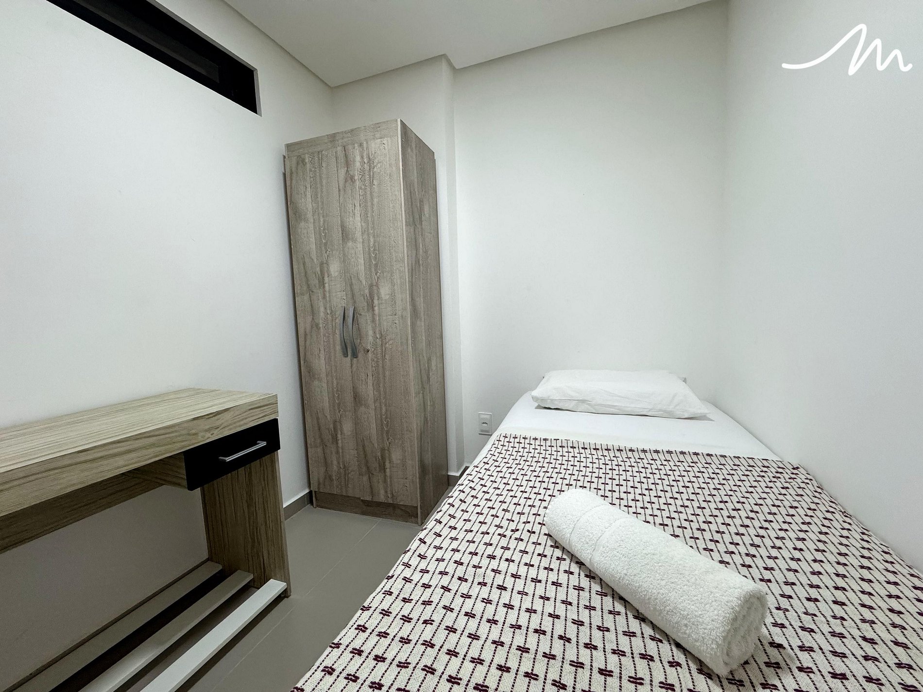São dois quartos climatizados com ar-condicionado: a suíte possui uma cama de casal confortável, enquanto o segundo quarto conta com uma cama de solteiro e armário para organização dos seus pertences.