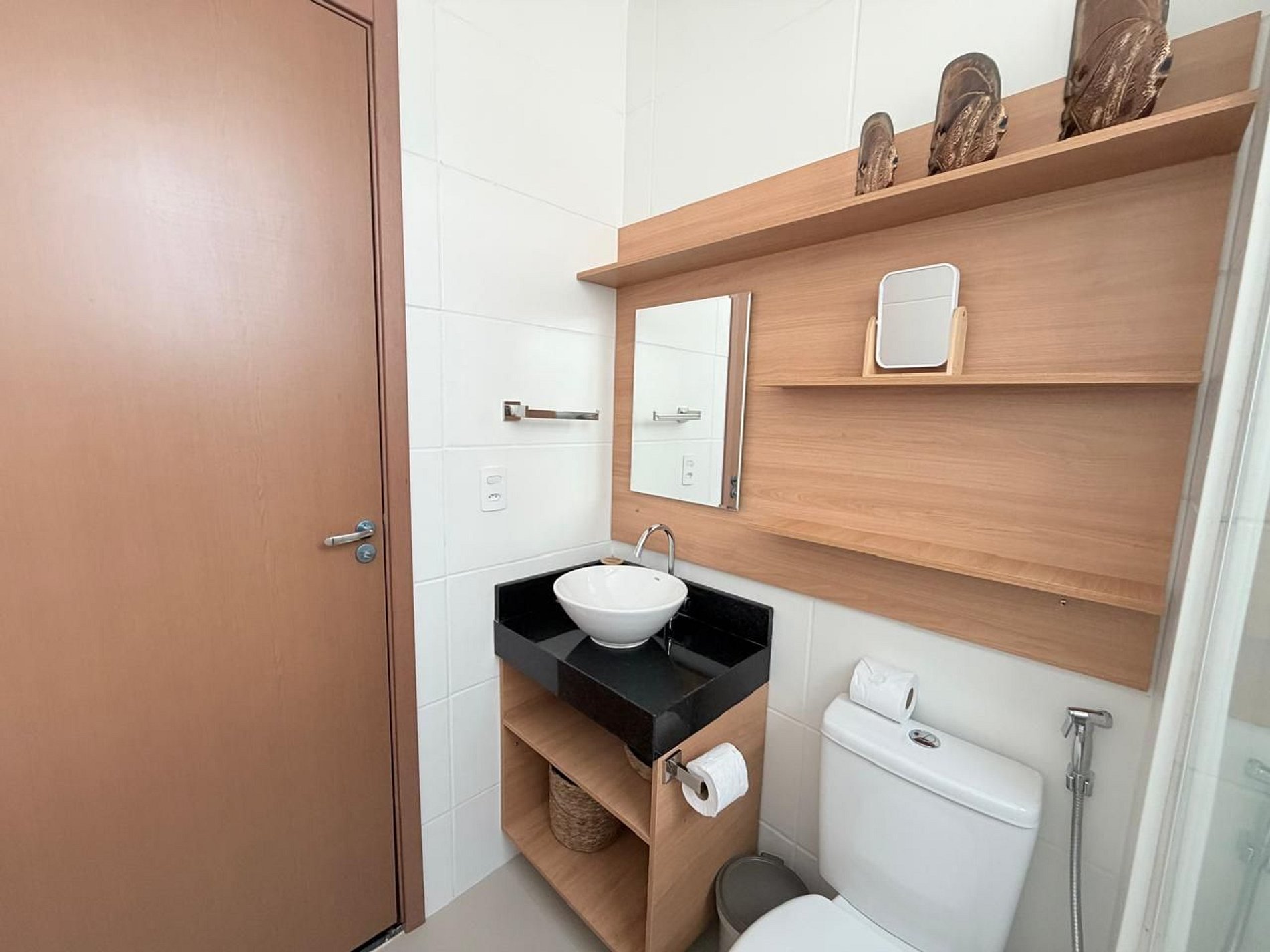 Com decoração clean e sofisticada, o apartamento oferece um ambiente moderno e acolhedor. O banheiro dispõe de chuveiro elétrico, ducha higiênica, espelho e secador de cabelo, garantindo conforto em cada detalhe da sua estadia.