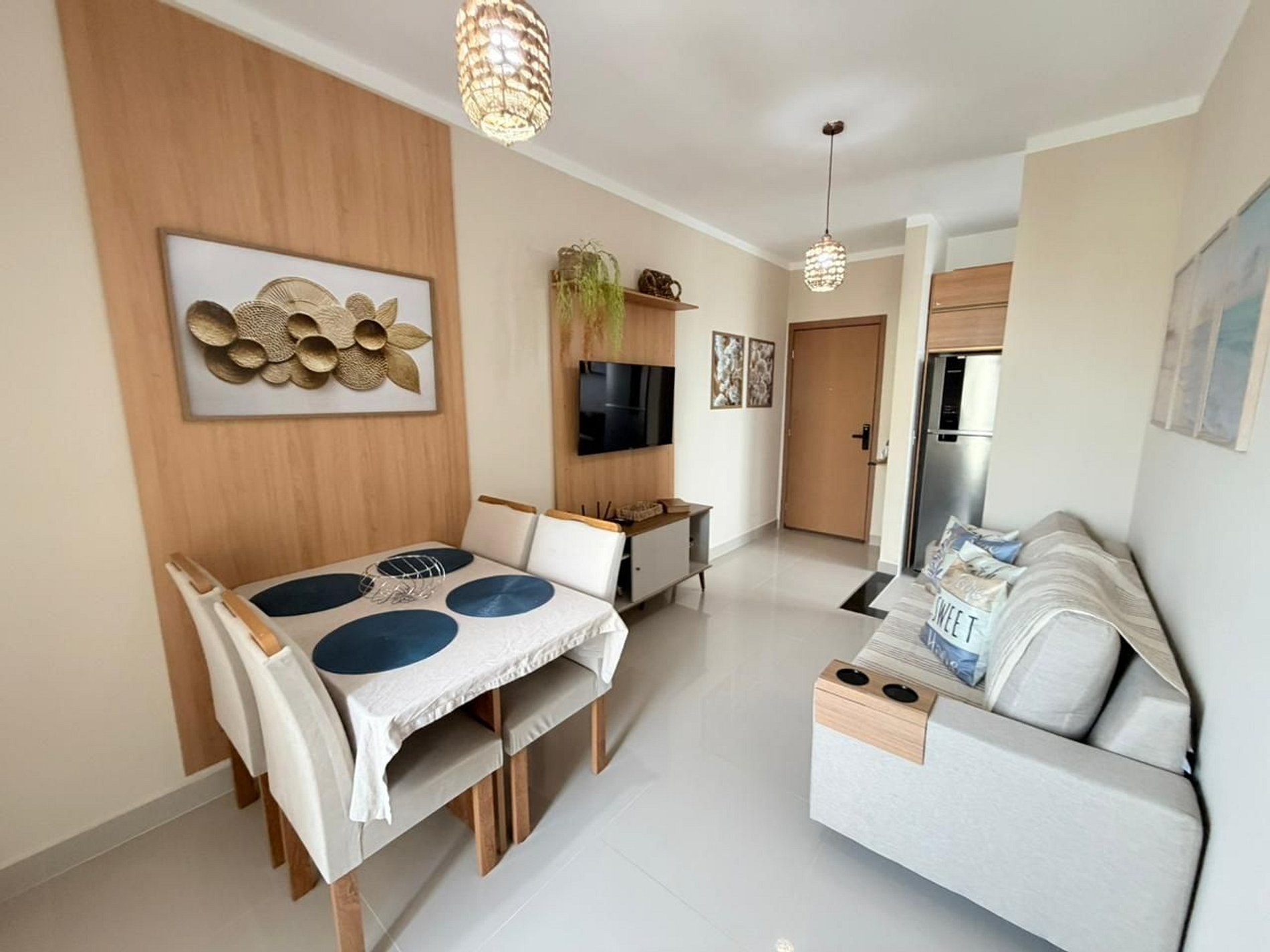 Descubra o conforto de se hospedar em um apartamento novo, moderno e totalmente equipado. O imóvel possui dois quartos, sendo um com cama de casal e outro com duas camas de solteiro, ambos com ar-condicionado, acomodando confortavelmente até 4 hóspedes.