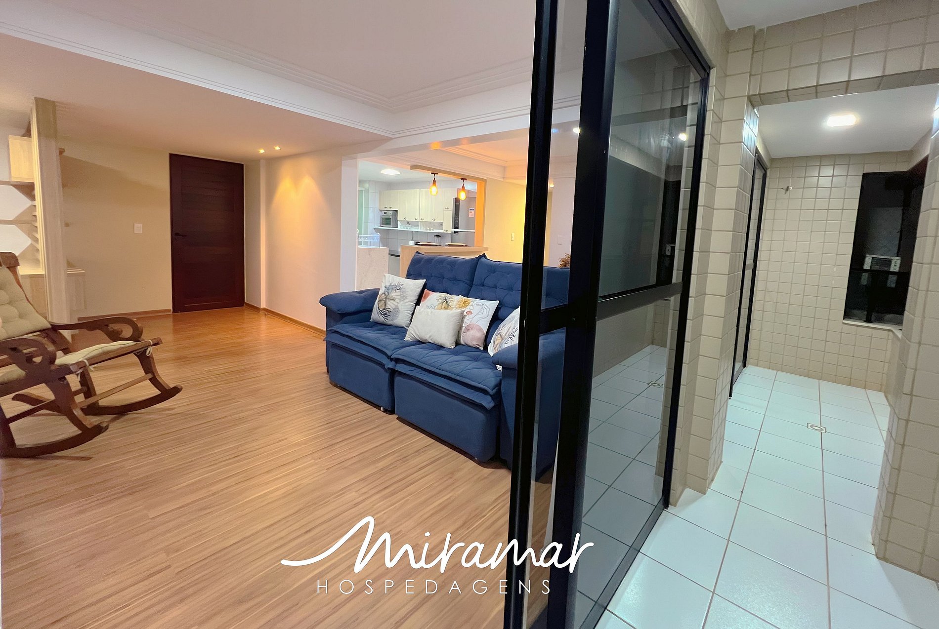 Apartamento próximo da praia, amplo e com varanda, 3 quartos suítes, climatizado com ar condicionado e com wi-fi, com 3 camas de casal e sofá-cama, acomoda até 7 pessoas confortavelmente. Possui sala de estar com smart tv, cozinha com eletrodomésticos e utensílios essencias como fogão, geladeira e sanduicehira. Além do mais, uma bela varanda para aprecisar a vista. O prédio possui recepção 24 horas. Localizado no Cabo Branco, bairro nobre de João Pessoa, perto de pontos comerciais.