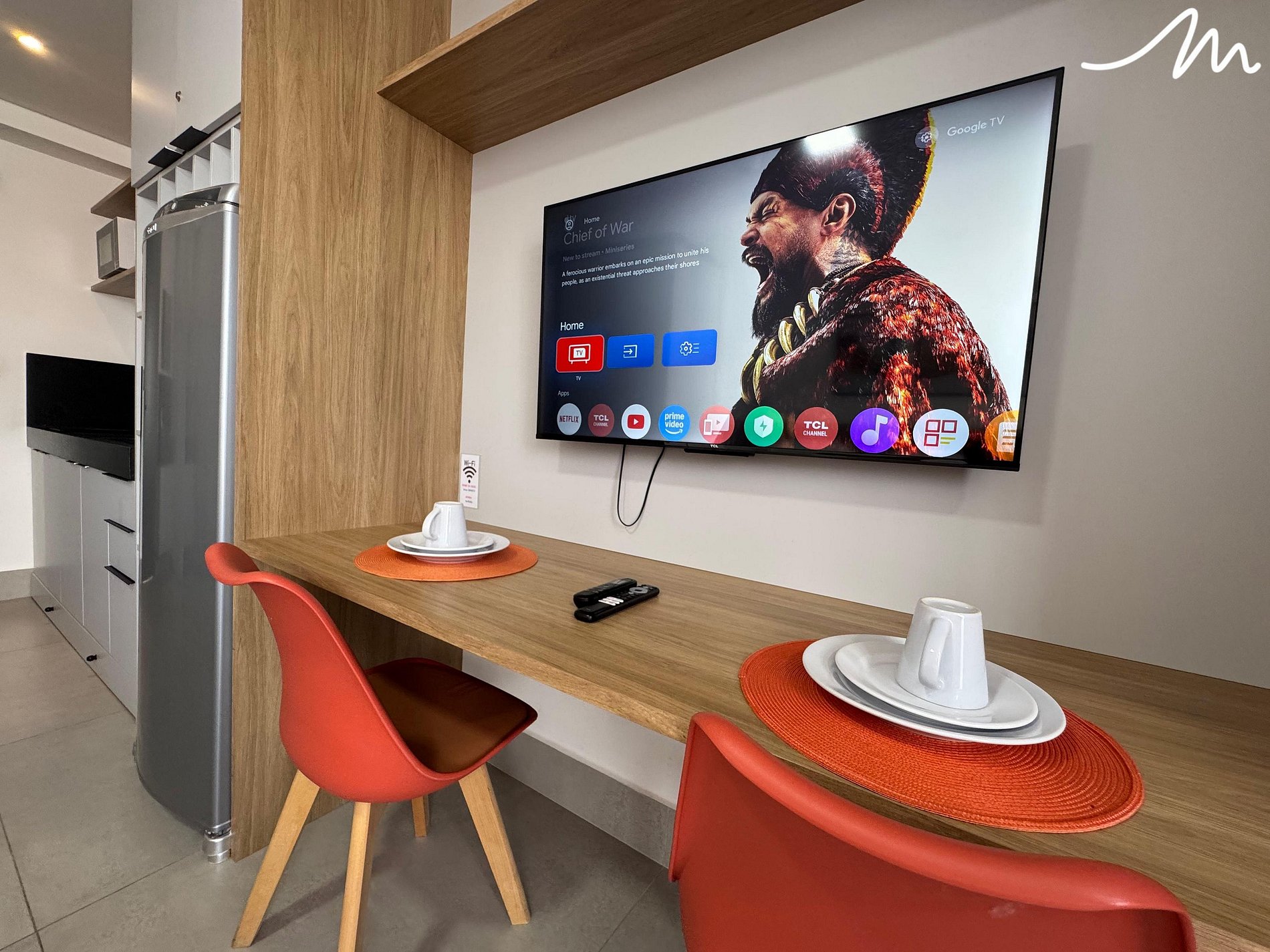 O flat proporciona uma estadia confortável e relaxante, com uma cama de casal espaçosa. Para o entretenimento, uma Smart TV está disponível, garantindo momentos de descanso com uma variedade de opções de conteúdo. A cozinha é equipada com eletrodomésticos modernos, como geladeira, cafeteira, fogão, liquidificador e micro-ondas, facilitando a preparação de refeições rápidas e práticas. Além disso, oferecemos um enxoval de cama e banho completo, incluindo lençóis e toalhas, para que você tenha tudo o que precisa para uma estadia confortável e agradável. É o espaço perfeito para relaxar e se sentir em casa!