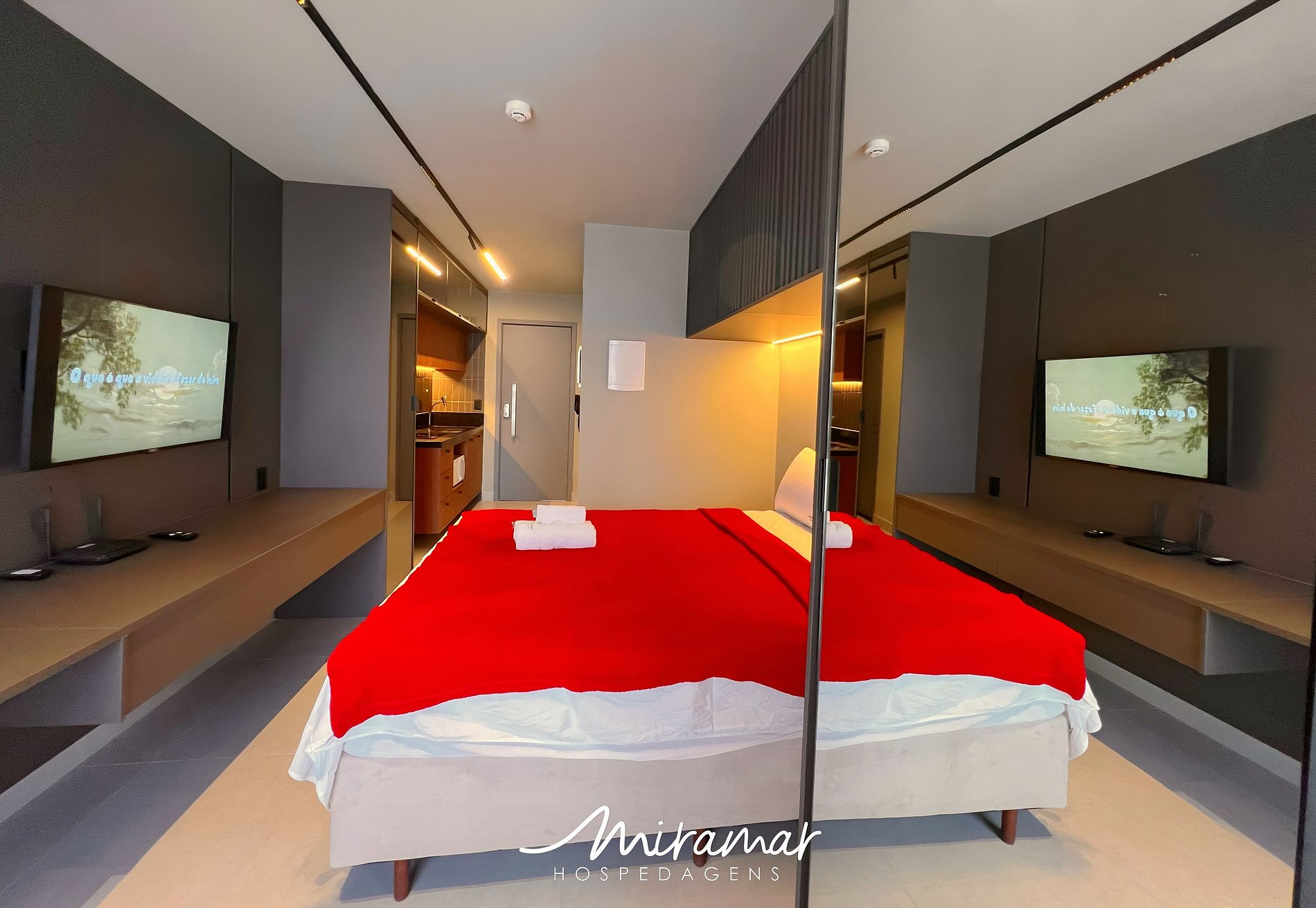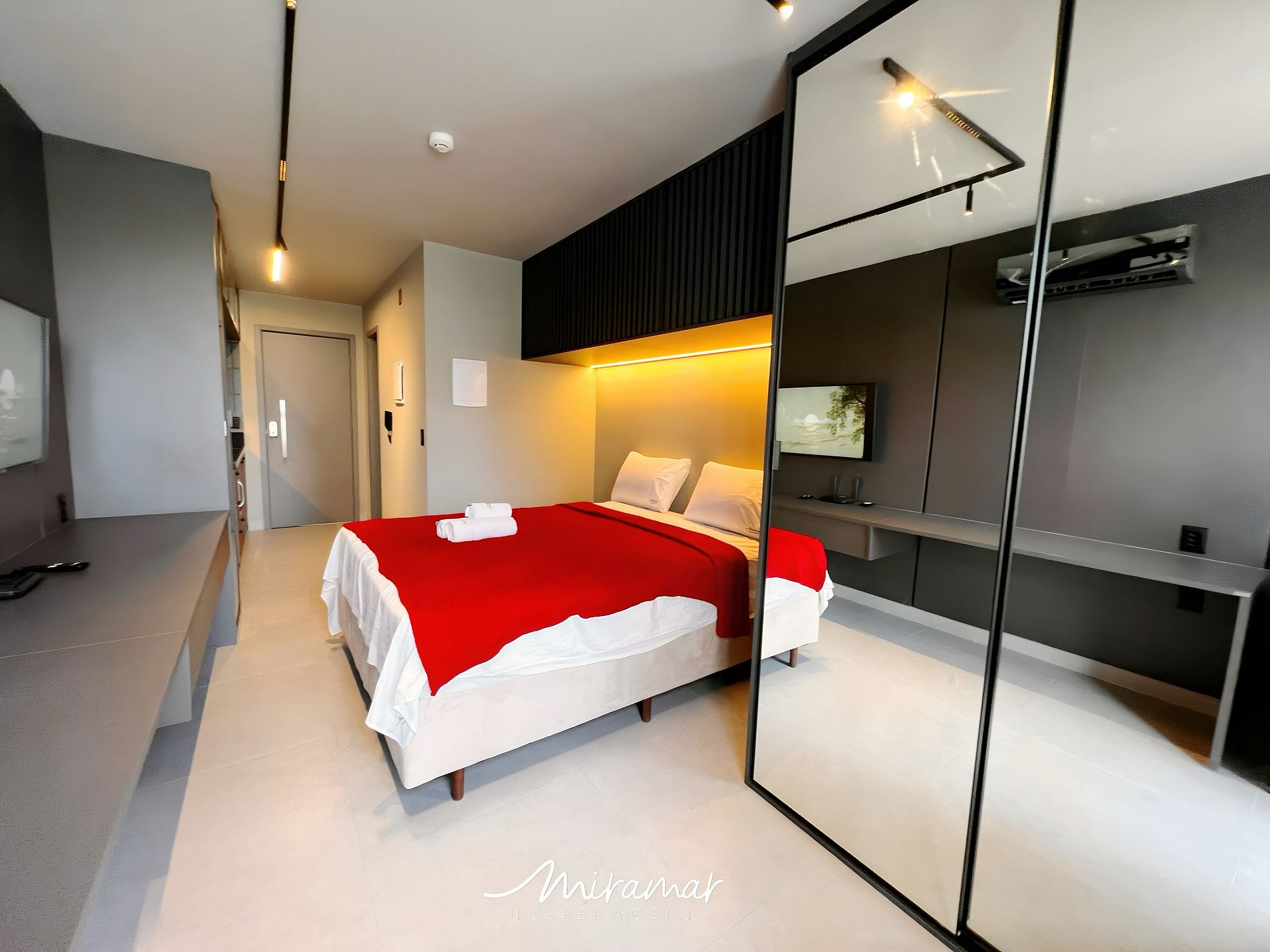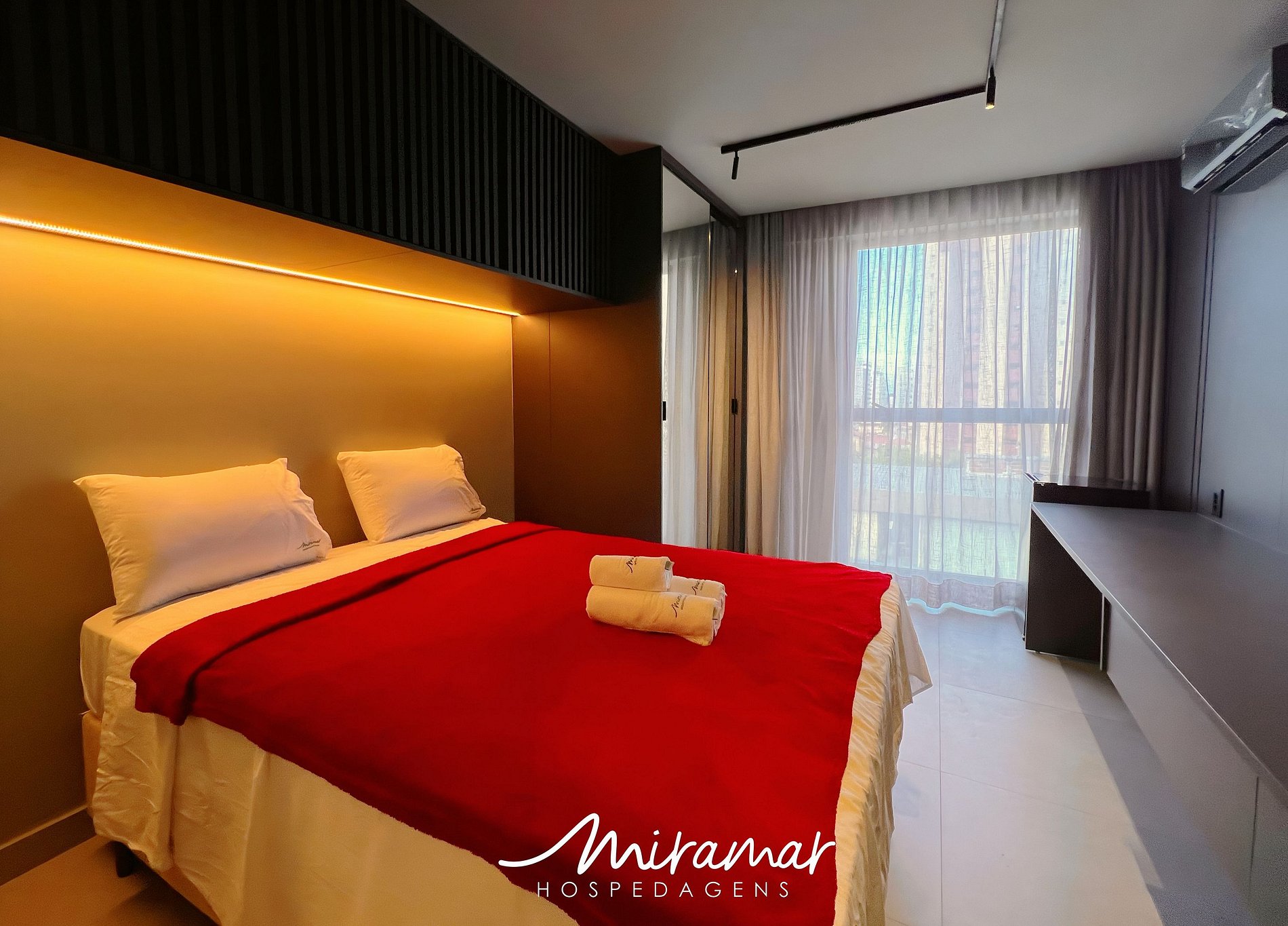 Venha viver momentos especiais neste flat moderno e aconchegante, a poucos metros do Shopping Manaíra! Ideal para casais ou viajantes individuais, o espaço conta com cama de casal confortável, iluminação em LED que traz sofisticação e bem-estar, além de uma ampla janela com vista para a cidade. O guarda-roupa com espelhos e cabides garante praticidade, enquanto a TV proporciona entretenimento nos seus momentos de descanso.