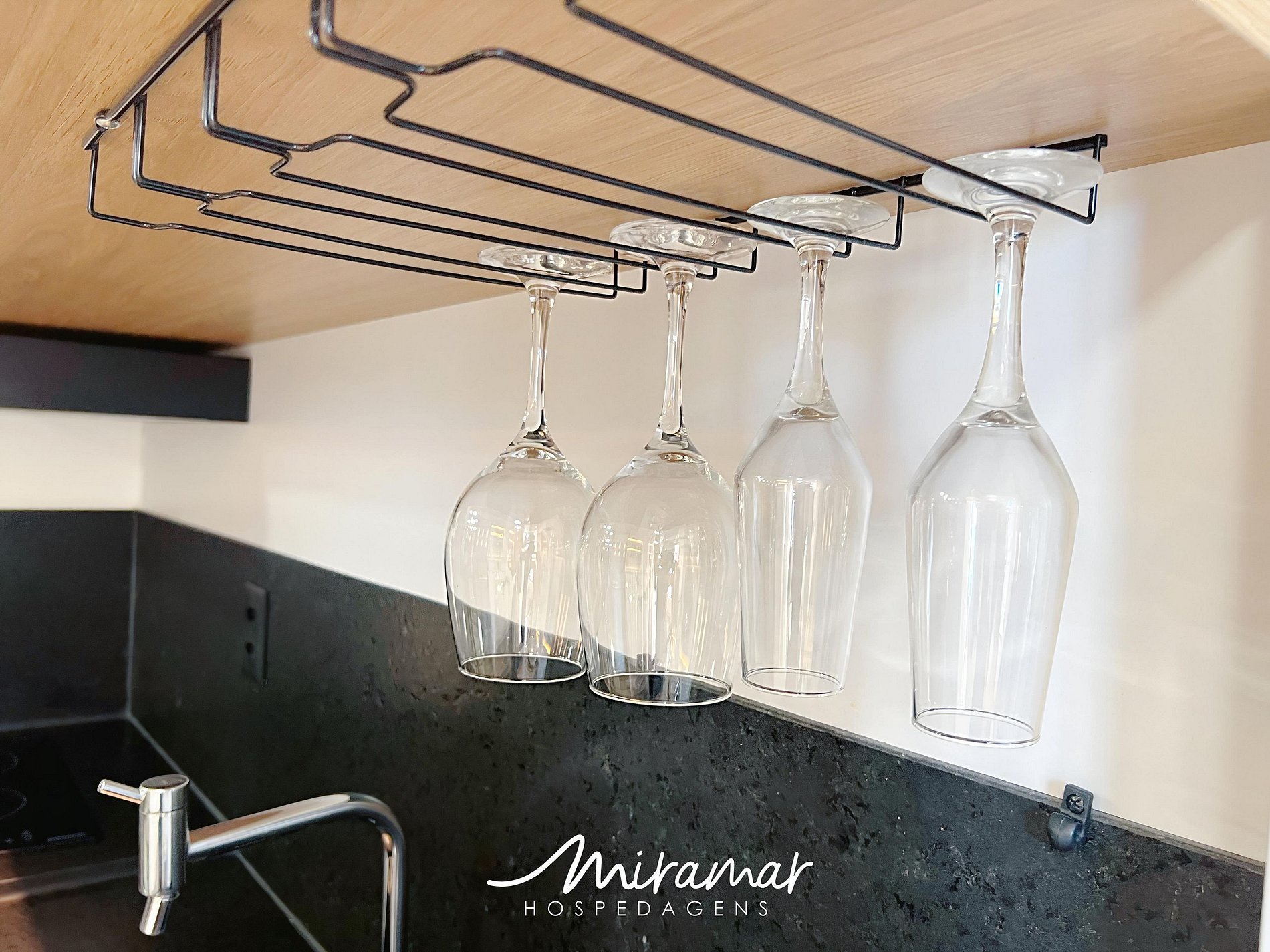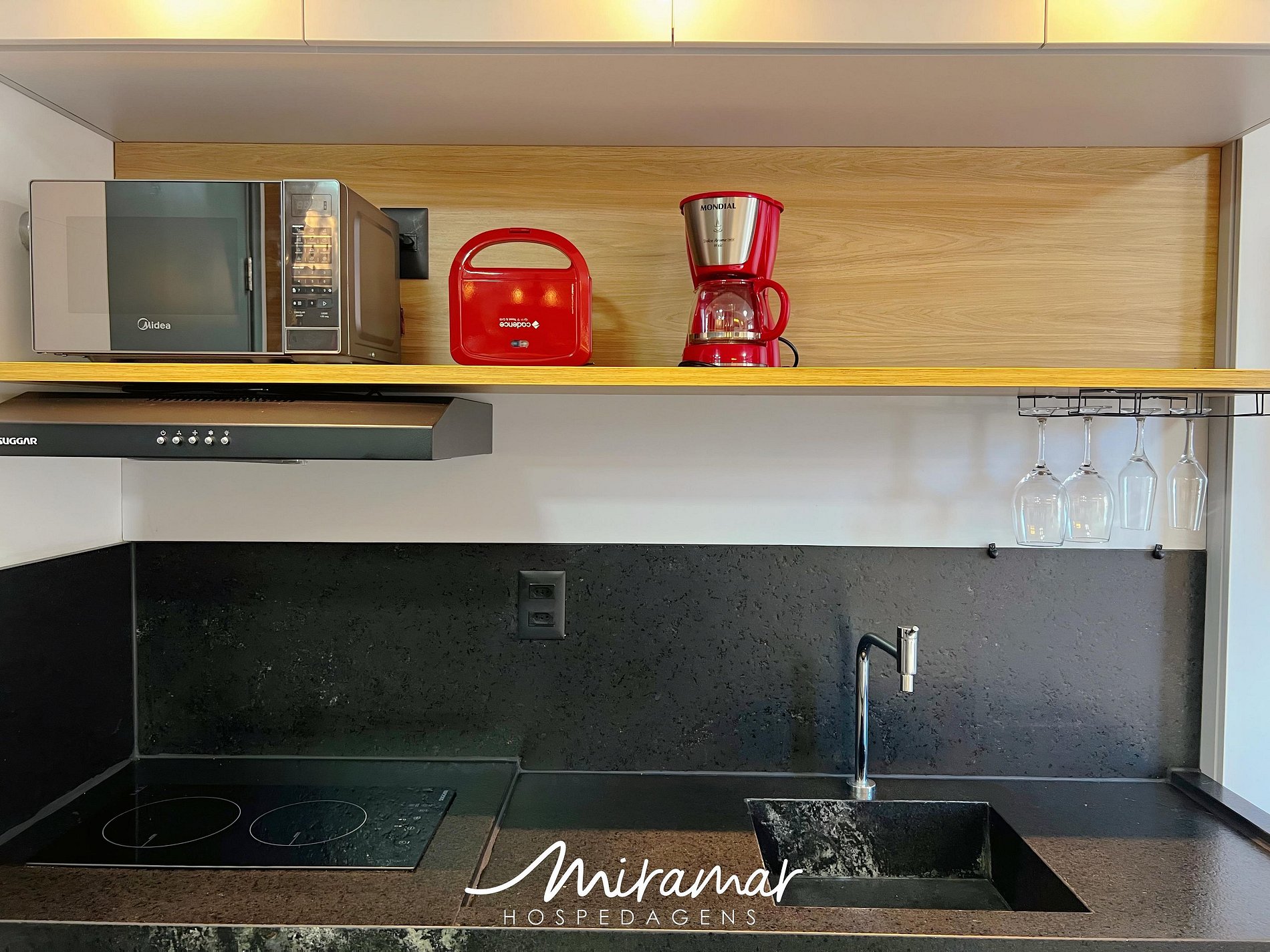 A cozinha, dispõe de eletrodomésticos modernos, como frigobar, cafeteira, cooktop de indução, coifa e micro-ondas, facilitando a preparação de refeições rápidas e práticas. Além disso, oferecemos um enxoval de cama e banho que inclui lençóis e toalhas, para que você tenha tudo o que precisa para uma estadia confortável e agradável.
