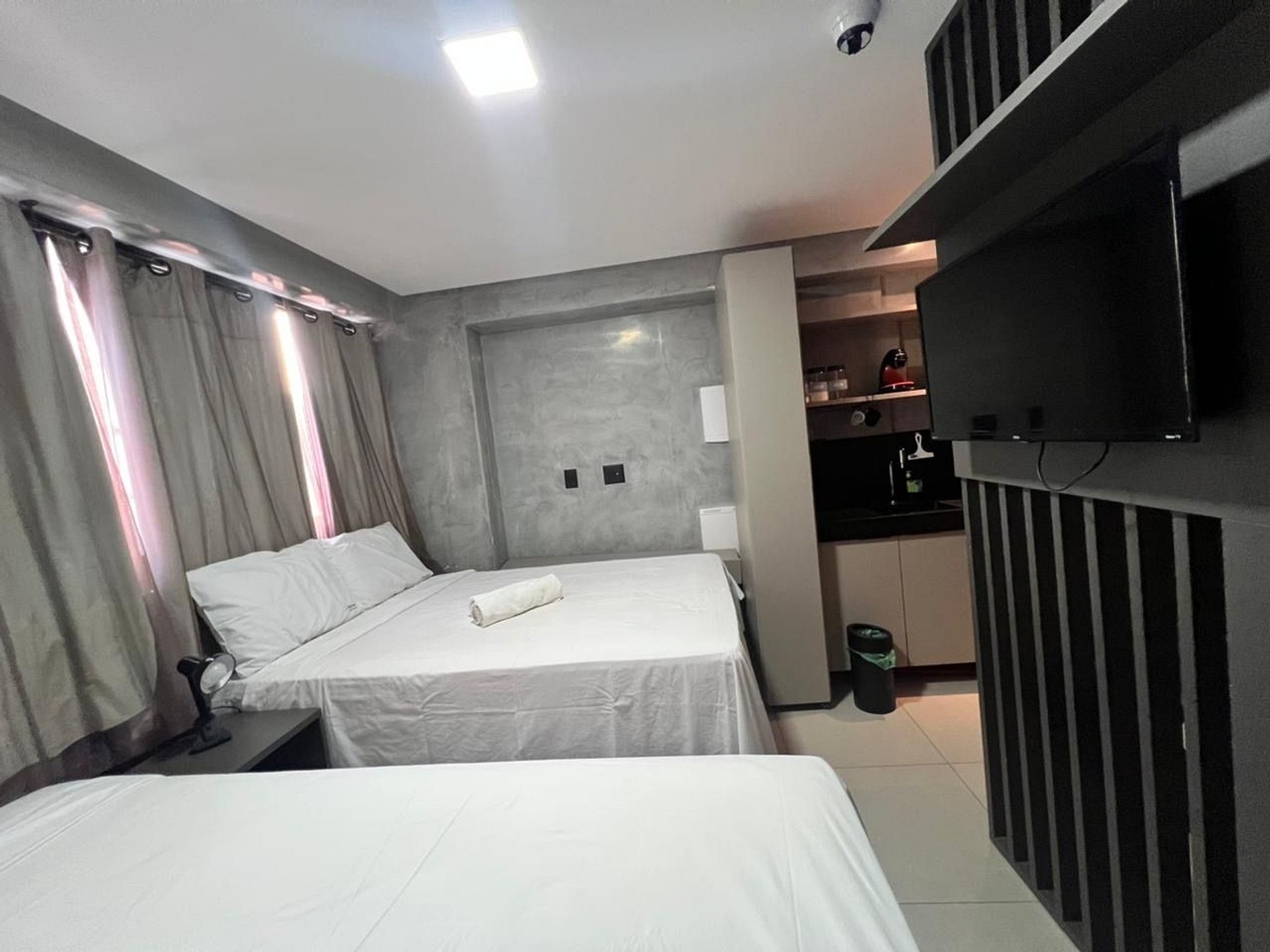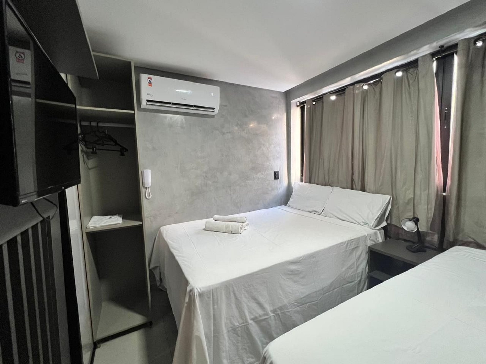 O flat proporciona uma estadia confortável com duas camas de casal e ar condicionado.