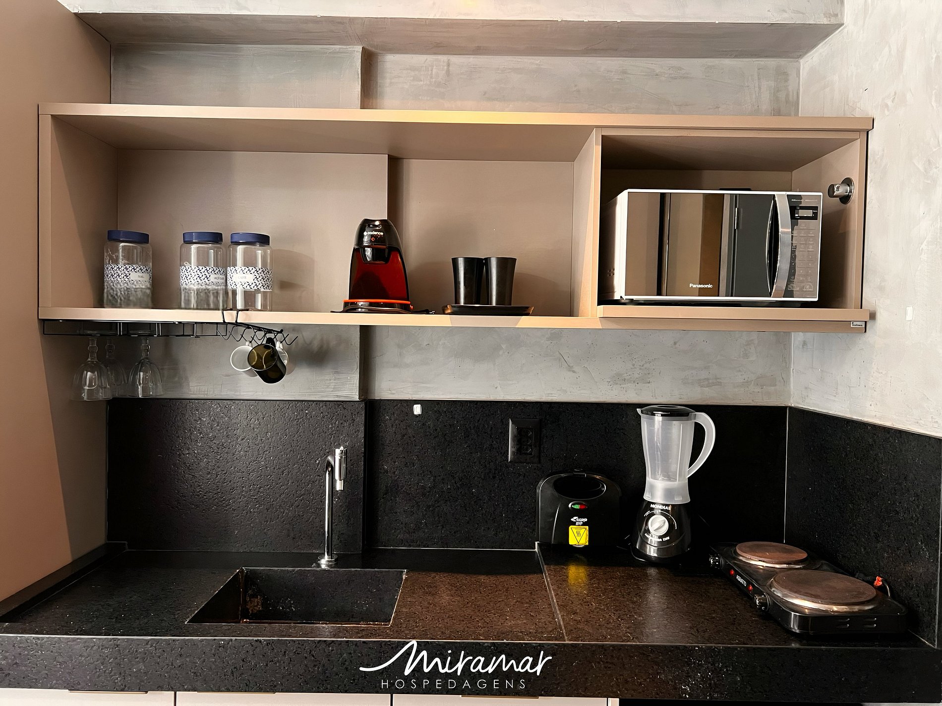 A cozinha, dispõe de eletrodomésticos, como frigobar, fogão e micro-ondas, facilitando a preparação de refeições rápidas e práticas. Além disso, oferecemos um enxoval de cama e banho que inclui lençóis e toalhas, para que você tenha tudo o que precisa para uma estadia confortável e agradável.