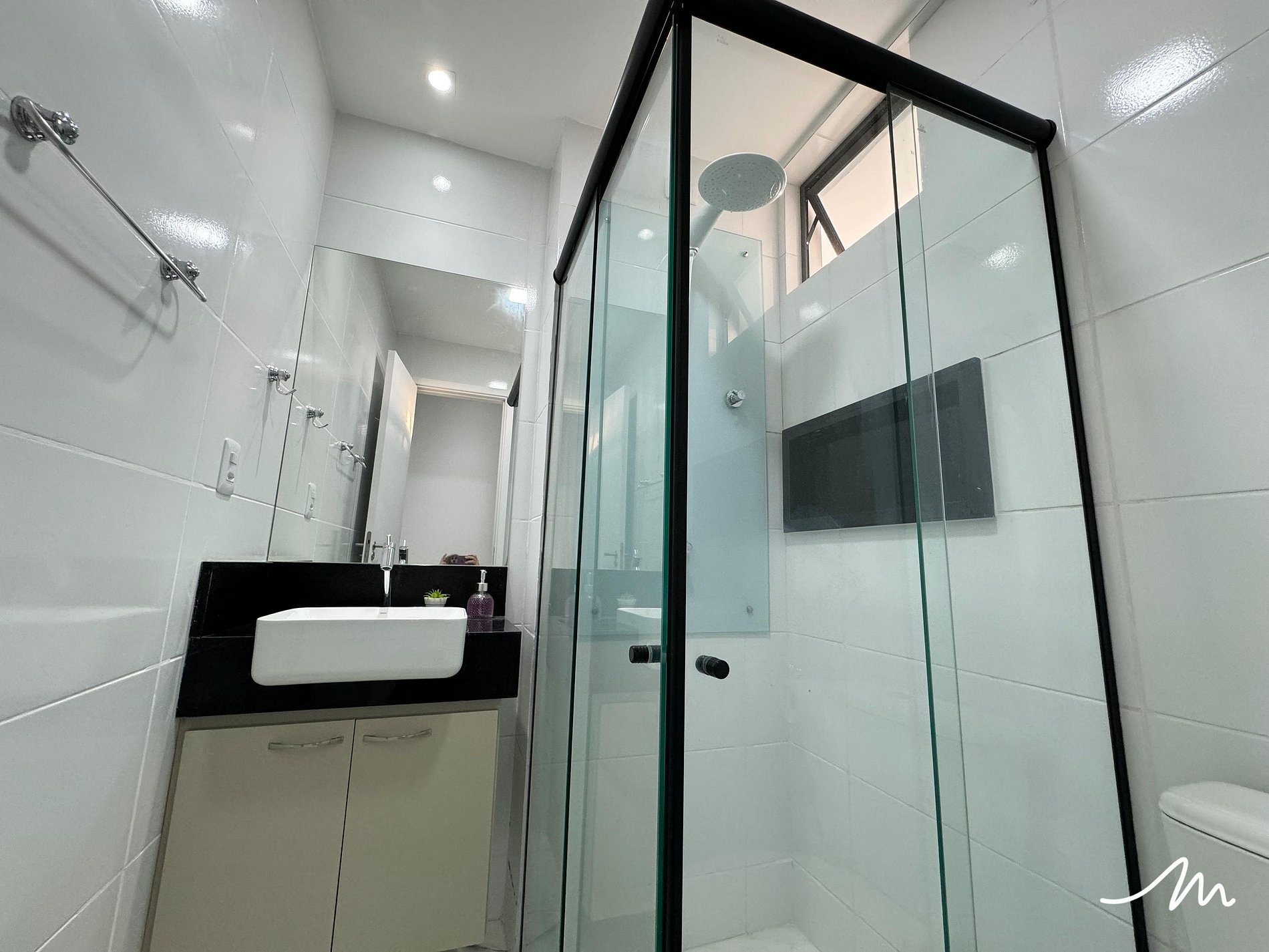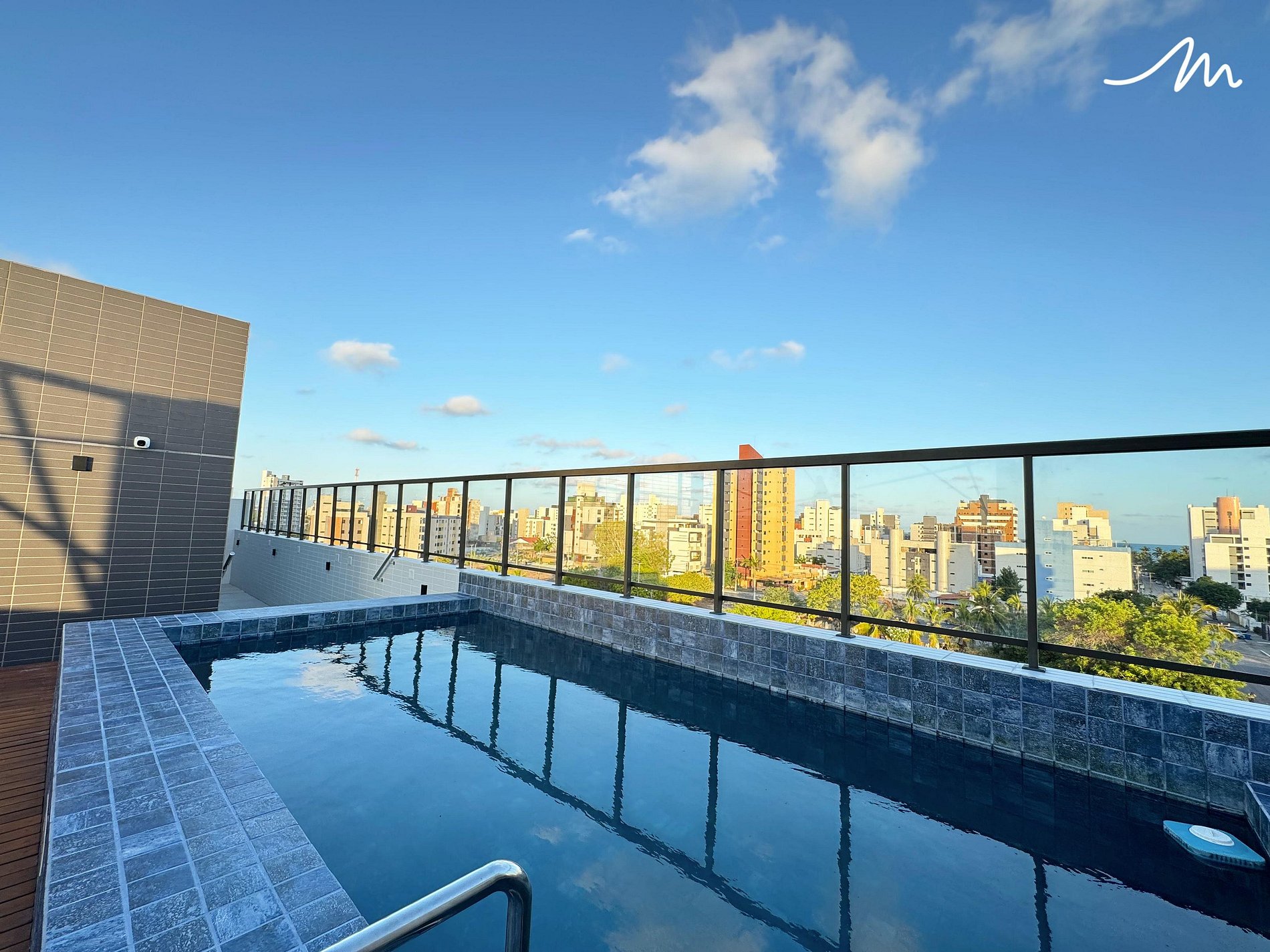O prédio oferece uma infraestrutura de alto padrão, com uma linda piscina na cobertura, ideal para relaxar e apreciar a vista. A recepção funciona 24h, garantindo a sua segurança e conveniência a qualquer momento. O estacionamento é rotativo, sujeito à disponibilidade, proporcionando praticidade para o seu veículo durante a estadia.