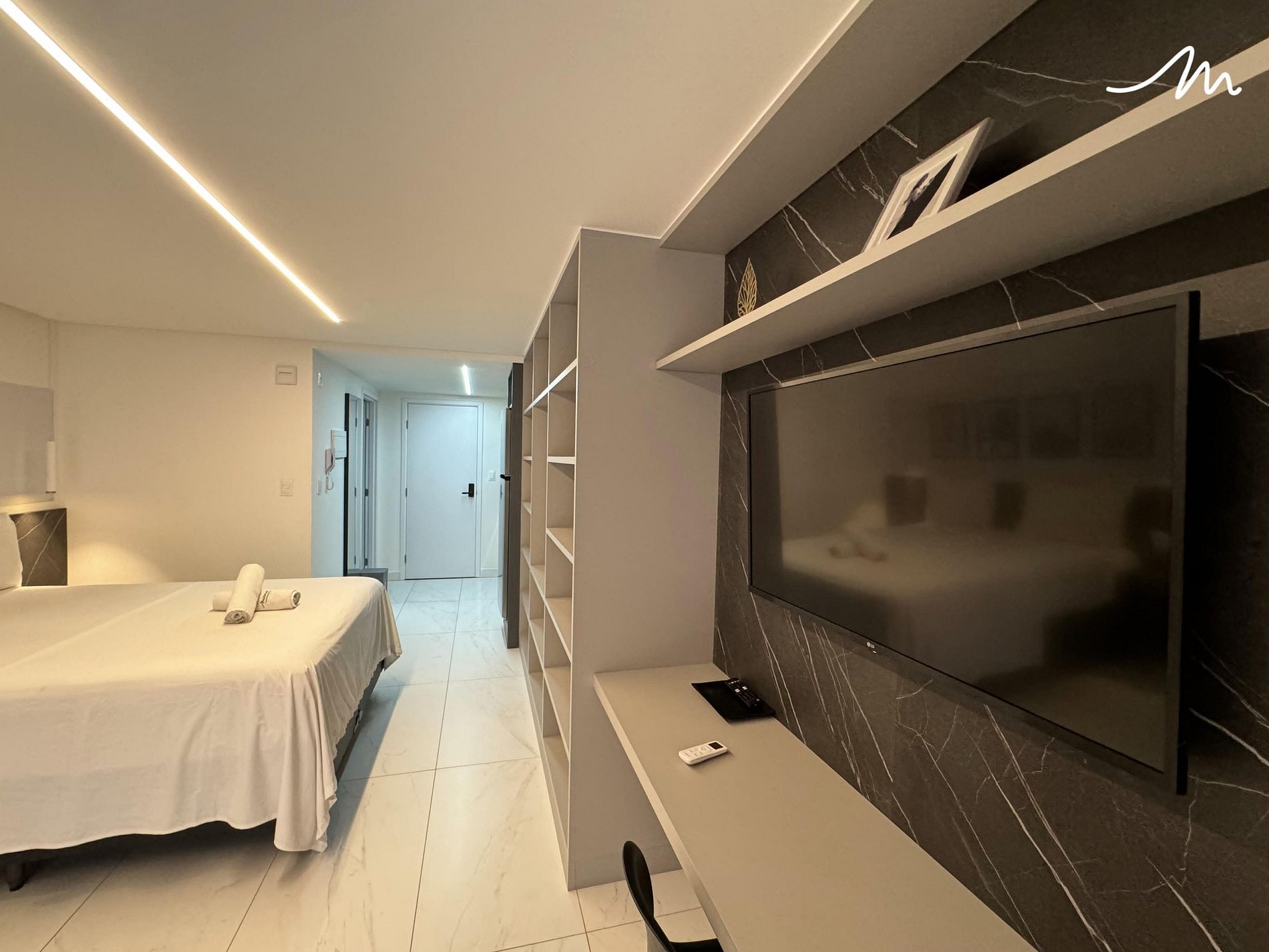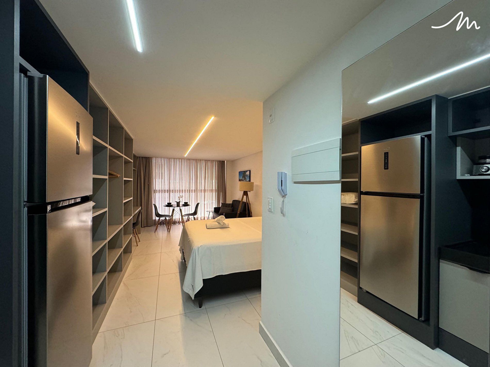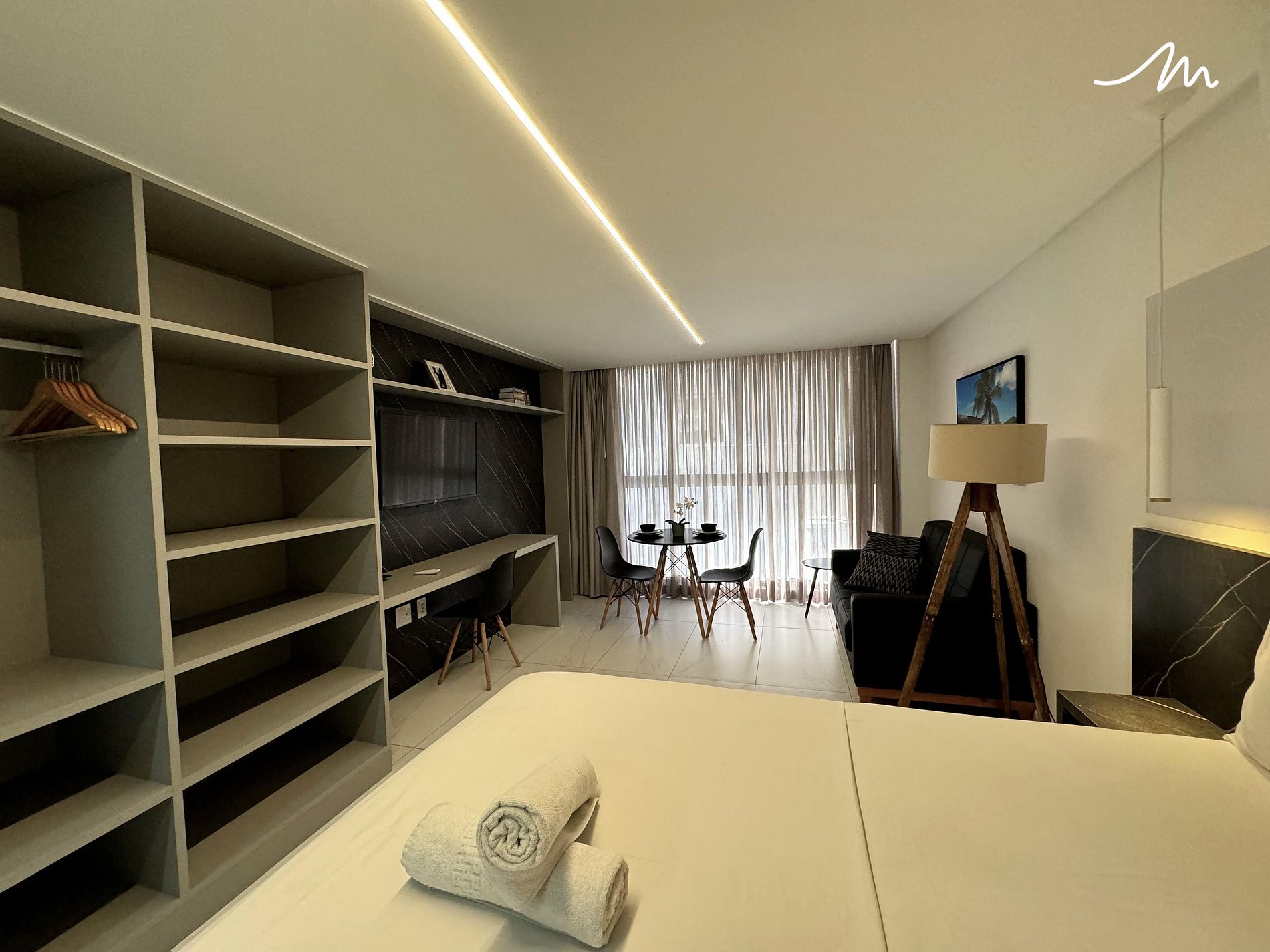 Venha conhecer esse e aconchegante flat no Unity, um prédio localizado a apenas a poucos metros do mar. A unidade é perfeita para até 3 hóspedes, com uma confortável cama de casal e cama auxiliar. Climatizado com ar-condicionado, garantindo um ambiente agradável durante toda a sua estadia. A cozinha compacta conta com fogão, geladeira, micro-ondas e liquidificador, ideal para preparar refeições rápidas, que podem ser saboreadas na mesa redonda disponível no ambiente.