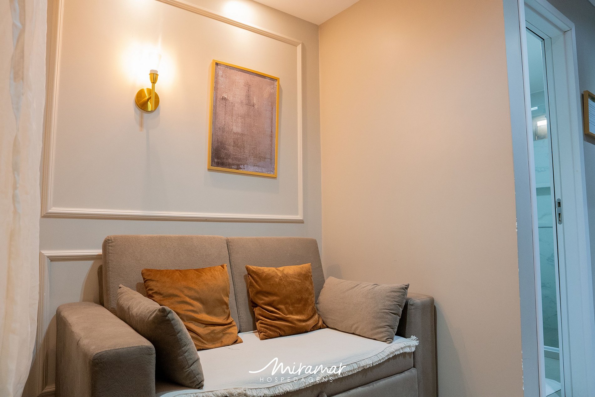 Os hóspedes poderam contar dentro da acomodação com um flat que comporta até 4 pessoas confortávelmente, sendo duas na cama de casal e duas no sofá cama, nas áreas comuns, poderam dispor de uma linda piscina de lounges e de uma academia.