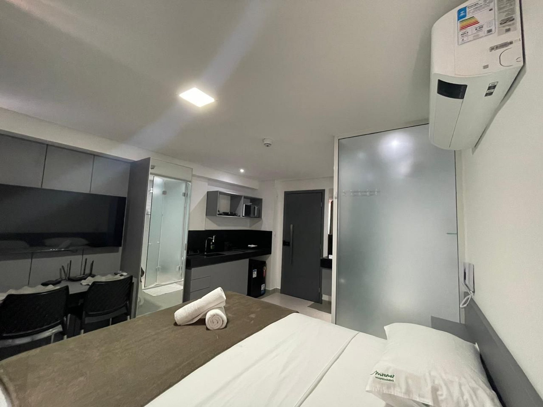 Flat equipado (smart tv; eletrodomésticos; enxoval de cama e banho; utensílios básicos domésticos).