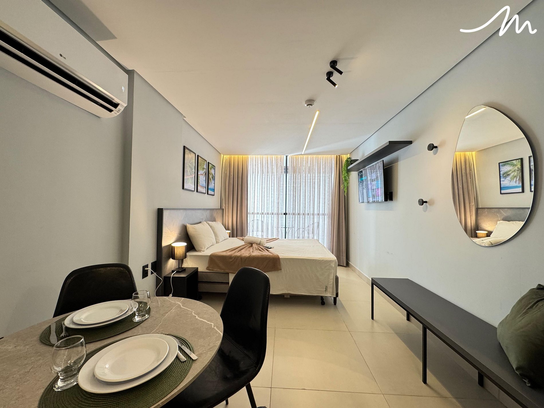 Confortável flat à Beira-Mar no edifício Alta Garden, ideal para relaxar com praticidade e charme. O ambiente é climatizado com ar-condicionado e dispõe de cama de casal, TV com varanda térrea com mesa e cadeiras, perfeita para momentos de descanso e contemplação. A cozinha compacta conta com itens essenciais para preparar refeições rápidas, além de uma mesa com duas cadeiras para seu conforto. Um espaço acolhedor que une comodidade e bem-estar, tornando sua estadia ainda mais especial.