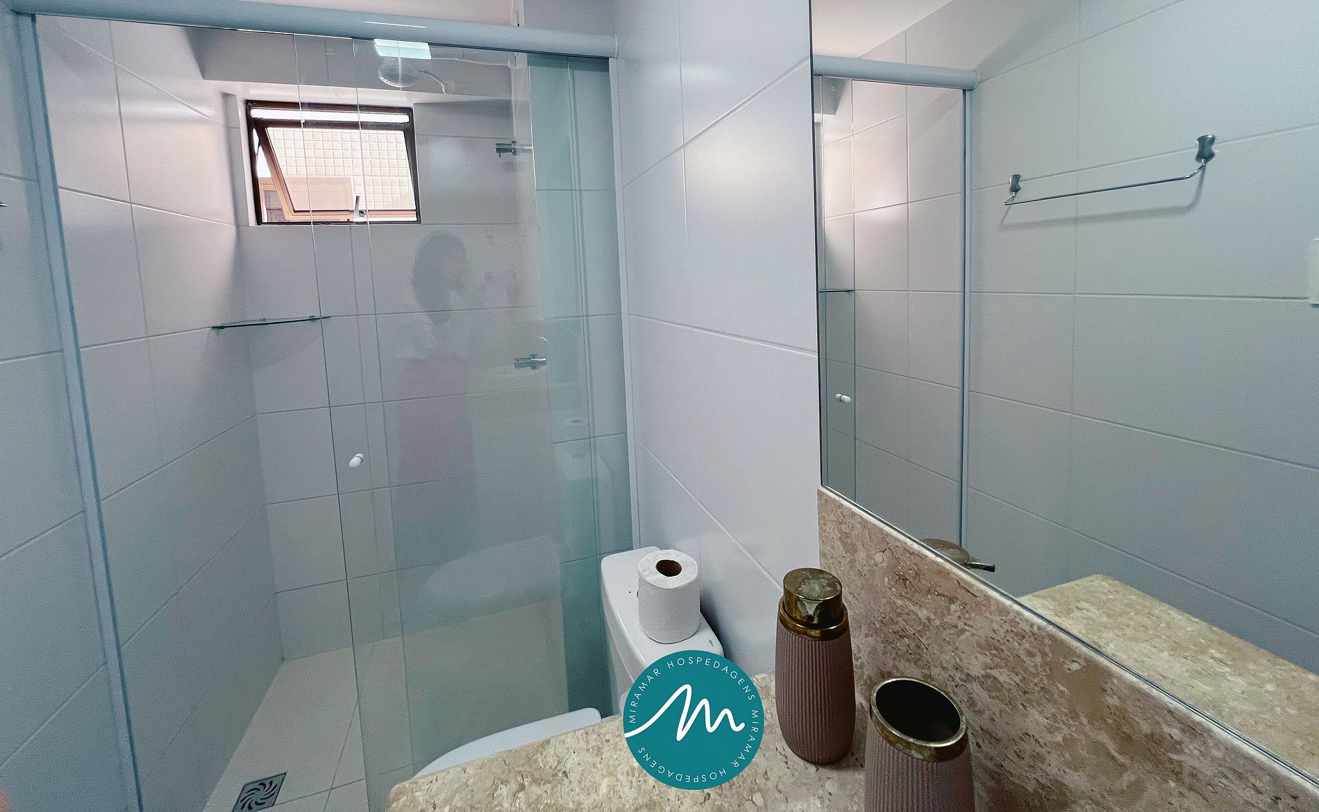 -Banheiro espaçoso, com chuveiro de água quente, garantindo conforto em qualquer horário do dia.