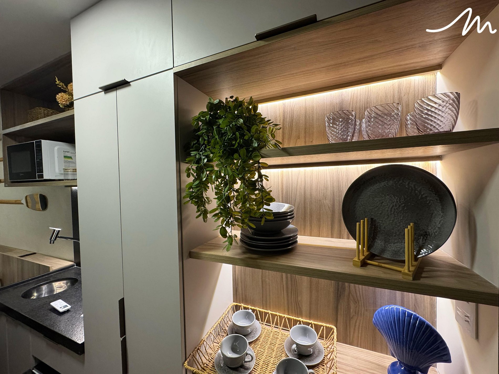 Na cozinha compacta, você encontrará todos os eletrodomésticos necessários para preparar refeições práticas, como cafeteira, micro-ondas, sanduicheira, air fryer e frigobar. Para seu conforto, a unidade também dispõe de ferro de passar roupas e secador de cabelo.