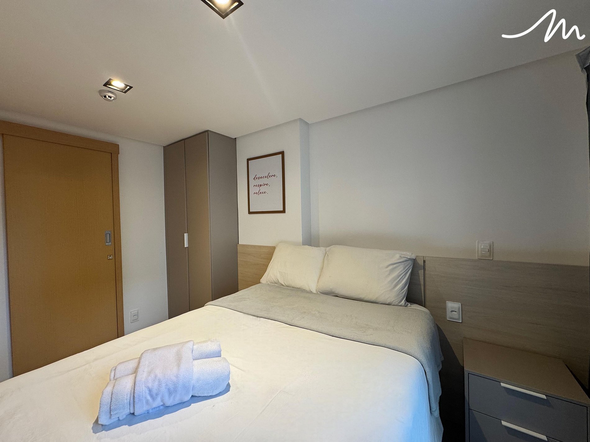 O espaço conta com dois quartos confortáveis, sendo uma suíte, além de um segundo banheiro social, sala de estar e uma cozinha completa. Os dois quartos possuem ar-condicionado, garantindo noites tranquilas mesmo nos dias mais quentes. A sala é aconchegante e equipada com sofá-cama, ideal para receber até dois hóspedes extras acomodando até seis pessoas no total.