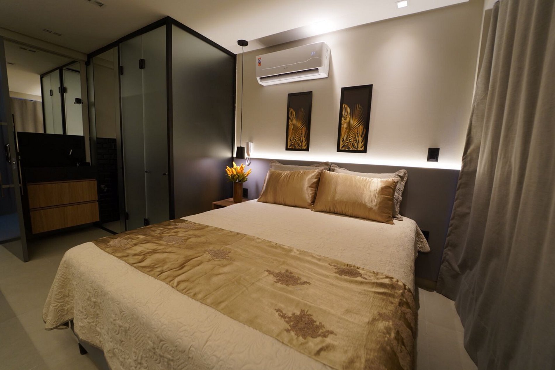 Flat equipado (smart tv, enxoval de cama e banho; utensílios básicos domésticos).