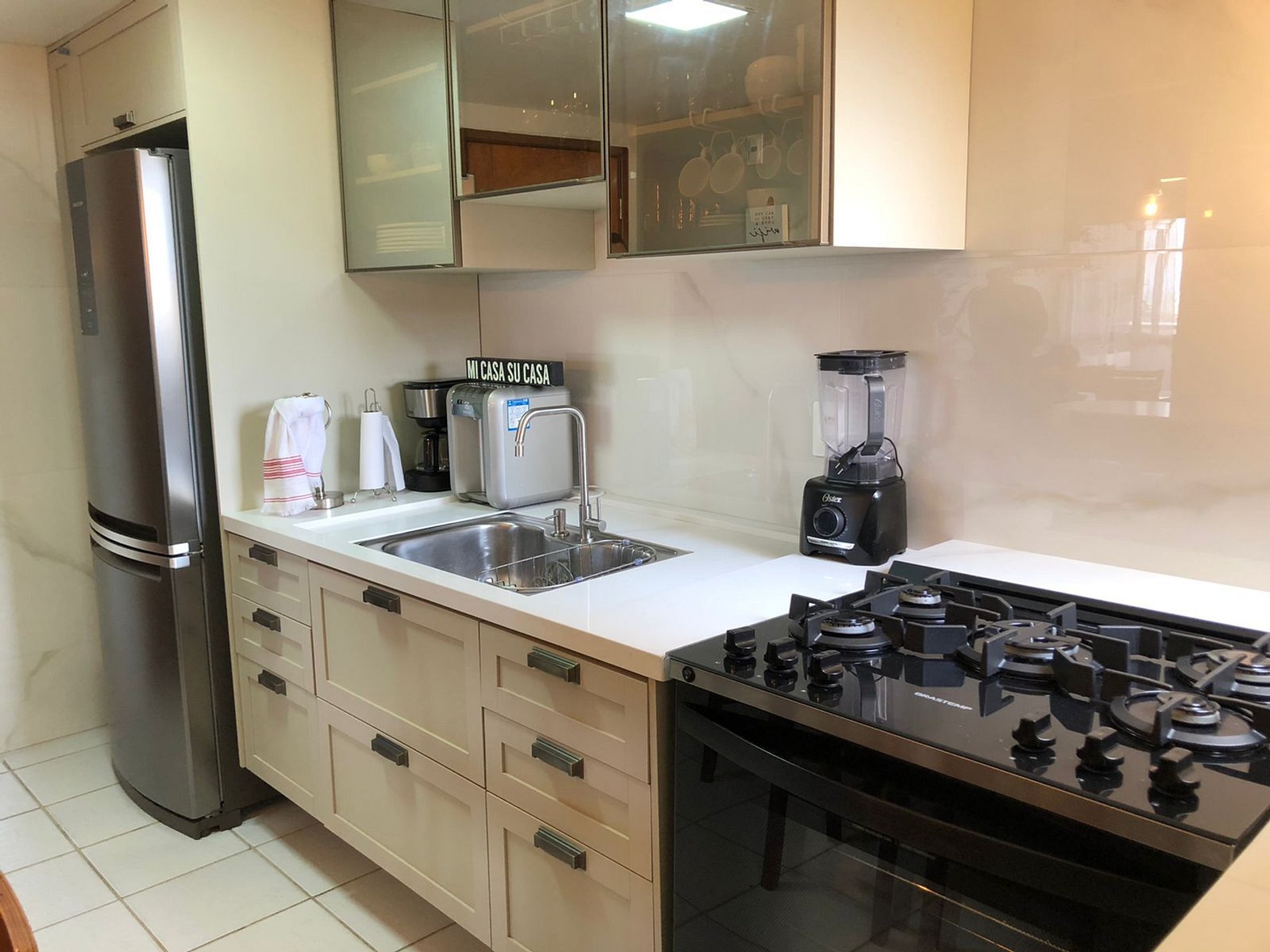 Apartamento totalmente equipado com três quartos, duas suítes com cama queen, um quarto com duas camas individuais e um colchão beliche, ar condicionado em dois quartos e na sala, um quarto com ventilador, sofá cama, sala de estar e jantar, cozinha completa e uma maravilhosa varanda. Ideal para famílias e amigos que desejam descansar e desfrutar de uma estadia confortável. Também dispõe de wi-fi, smart tv, eletrodomésticos, enxoval de cama e banho, utensílios básicos e domésticos.